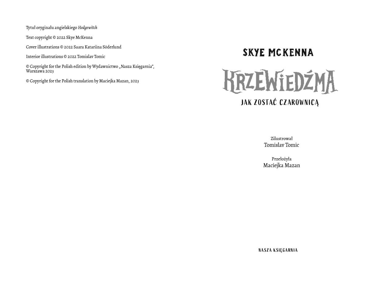 Daj się oczarować… „Jak zostać czarownicą” to seria stworzona dla wielbicieli Harry’ego Pottera! Minęło siedem lat, odkąd Cassie Morgan po raz ostatni widziała matkę. W okropnej szkole z internatem przy zdrowych zmysłach trzymają ją tylko marzenia o ucieczce oraz zakazane książki: z opowieściami o magicznym ludzie faerów. Czyżby historie, które Cassie brała dotąd za baśnie, mówiły prawdę? Dziewczynka przekona się o tym na własnej skórze, gdy postanowi odnaleźć zaginioną mamę i wyruszy w nieznane. Dzięki pomocy gadającego kota Montekiego dotrze do krewnej, o istnieniu której nie miała pojęcia – i to nie byle jakiej krewnej, gdyż ciotka Miranda należy do szacownego rodu czarownic: potężnych i tajemniczych strażniczek bezpieczeństwa ludzi! Brzmi dobrze? A to dopiero początek przygody! Cassie już niebawem odkryje, że wiedźmą nie można się urodzić… ale można nią zostać. Skye McKenna przyszła na świat w osadzie górniczej w Australii. Dorastała w atmosferze szacunku dla zwierząt i całej dzikiej przyrody. W poszukiwaniu przygód wyruszyła do Wielkiej Brytanii i pokochała tamtejsze krajobrazy. Obecnie mieszka w Szkocji… i jeśli właśnie nie czyta ani nie pisze, to najpewniej szuka pomysłów do swoich powieści pośród wzgórz i lasów. Powyższy opis pochodzi od wydawcy.