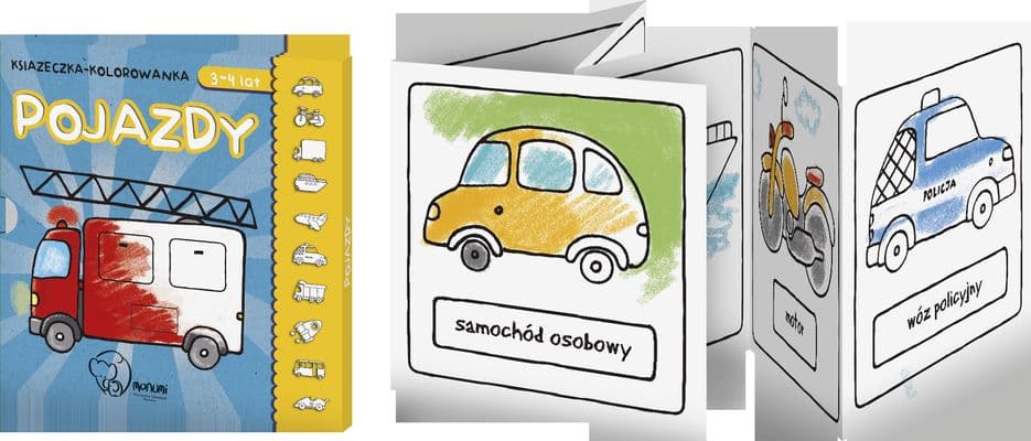 O książce Książeczka kolorowanka pojazdy