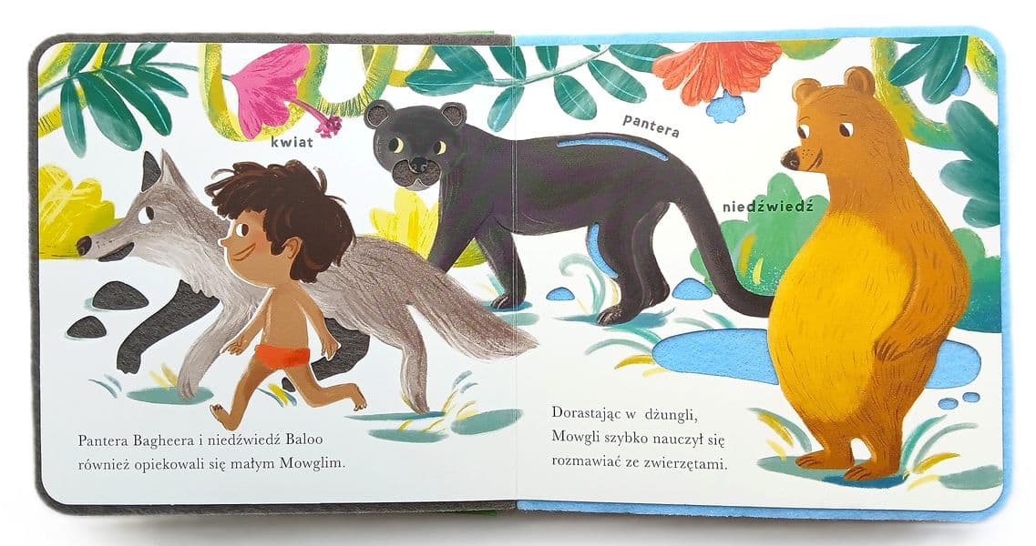 Dzięki tej bajce z mięciutkimi filcowymielementami Twój maluszek pozna historię Mowgliego i nauczy się nowych słówek.