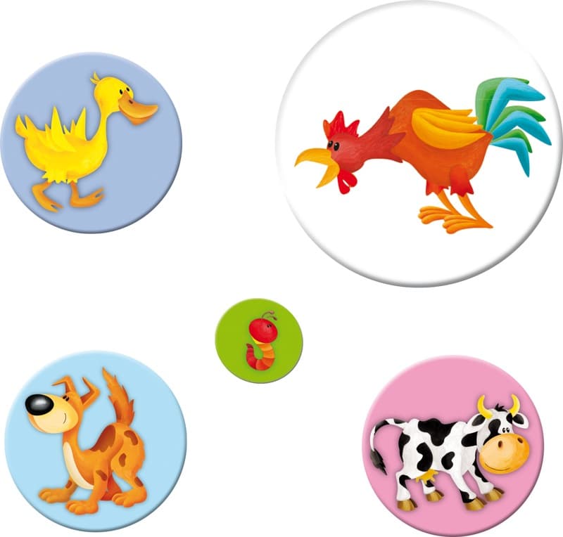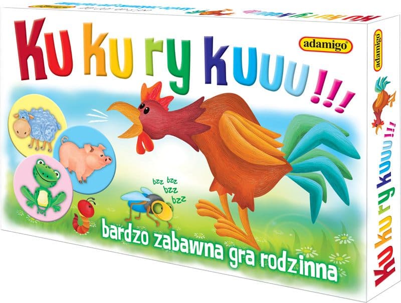 Proste zasady, komiczne sytuacje, wynikające z konieczności naśladowania zwierzęcych głosów, możliwość wspólnej zabawy maluchów z dorosłymi, to atuty tej gry. Potrzebne do niej będą: świetny refleks, spostrzegawczość i dobry głos. Daje to gwarancję zgromadzenia największej liczby żetonów z robaczkami - przysmakiem koguta..., który jest jokerem w tej grze. Liczba graczy: 2-6 Wiek: 3+