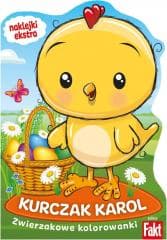 W towarzystwie sympatycznych zwierzątek dzieci ćwiczą umiejętności grafomotoryczne, rozwijają wyobraźnię i poczucie estetyki. Obrazki można pokolorować według własnego pomysłu albo wzoru z naklejki. Wspaniałej zabawy życzy Kurczak Karol!