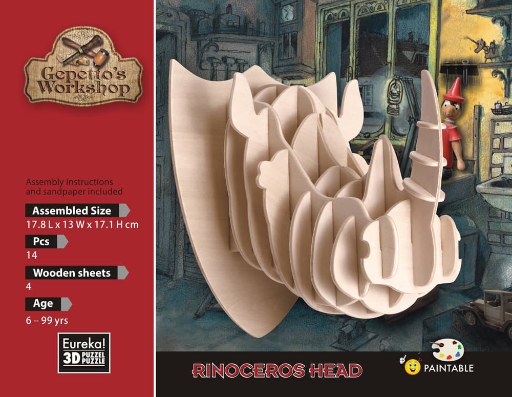 Szczegółowe informacje na temat gry Łamigłówka drewniana Gepetto Głowa Nosorożca