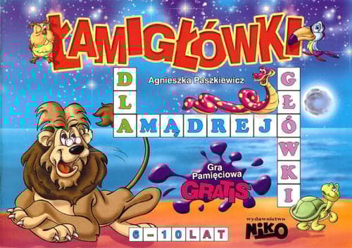Książeczka "Łamigłówki dla mądrej główki" to zbiór zadań, których celem jest rozwijanie u dzieci 6-10 letnich podstawowych zakresów myślenia logicznego i matematycznego. Ćwiczenia zawarte w publikacji polegają na: porównywaniu przedmiotów, znajdowaniu brakujących elementów, tworzeniu nowych słów, liczeniu, rozwiązywaniu rebusów i krzyżówek. Dodatkową zachętą do ruszania "szarymi komórkami" przez nasze dziecko jest załączona gra, która w najlepszym z możliwych sposobów ćwiczy pamięć, spostrzegawczość i koncentrację dziecka, a przy tym jest świetną zabawą. Gra zawiera 40 kartoników z obrazkami, które należy dobrać w pary (20 par). Karty z obrazkami należy rozłożyć tak, aby obrazki były zakryte. Następnie każdy z uczestników zabawy odkrywa po dwie karty starając się trafić na parę takich samych obrazków. Jeśli się to nie uda, odkłada karty w to samo miejsce, w jakim przed chwilą leżały. Jeśli para kart zostaje odgadnięta, karty się zbiera i odkłada na bok. Wygrywa ten, kto zbierze największą ilość kart.