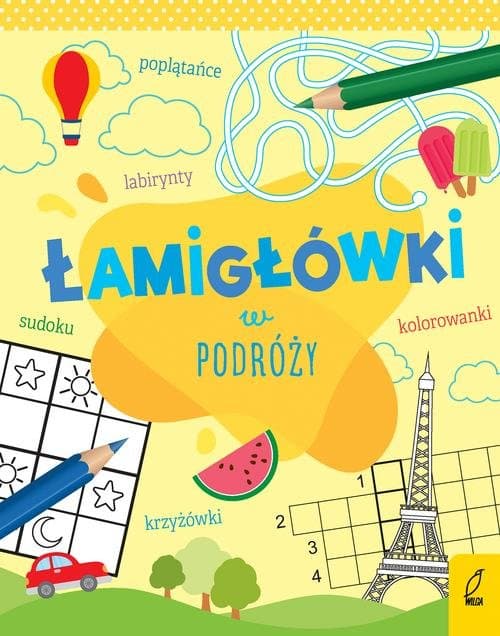 Podczas podróży nie trzeba się nudzić! Gdy dziecku dłuży się czas w pociągu, autokarze, samolocie, samochodzie, może sięgnąć po Łamigłówki w podróży. Ciekawe polecenia zajmą jego uwagę i zaangażują umysł. Do rozwiązania wiele zadań: sudoku różnego stopnia trudności, poszukiwanie różnic w obrazkach, labirynty, poplątańce, rebusy i wiele innych. Zrelaksować się można także przy kolorowankach.