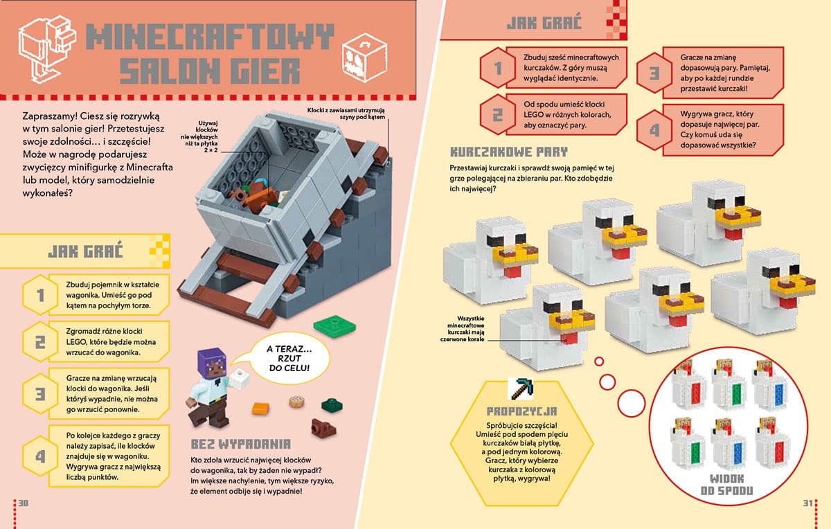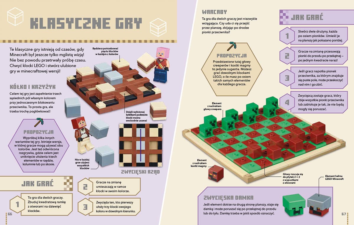 Uwielbiasz gry, nie tylko planszowe? W tej książce znajdziesz ponad 50 pomysłów na wyjątkowe projekty z klocków LEGO® inspirowane światem Minecrafta®, pomysłów na aktywności angażujące całą rodzinę, zarówno na ekranie, jak i poza ekranem! Przed Tobą godziny spędzone na wspaniałej zabawie dzięki książce pełnej gier. Odtwórz i zaprojektuj gry i puść wodze wyobraźni przenosząc bloki z Minecrafta do świata klocków. Ścigaj się z przyjaciółmi po Netherze, odnajdź „nietypowy” blok do budowania, zaprojektuj własne wesołe miasteczko LEGO® Minecraft® i odkrywaj o wiele więcej!