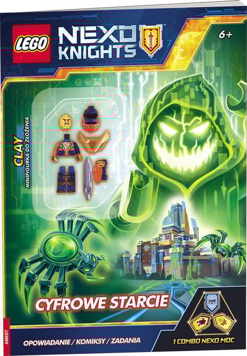 Nadszedł czas, żeby ponownie stanąć u boku dzielnych bohaterów NEXO KNIGHTS™ i pomóc im w walce przeciwko złemu Monstroksowi, który tym razem przyjął nową, cyfrowa postać. Nie zwlekaj – dołącz do Claya, Macy, Aarona, Axla oraz Lance’a, by ocalić królestwo Knighton i stać się częścią rycerskiej drużyny. Rozwiąż niesamowite zadania, przeczytaj ciekawe opowiadanie i śmieszne komiksy, a na pewno ci się to uda! Pamiętaj też o zeskanowaniu Combo Mocy NEXO oraz złożeniu minifigurki Claya.