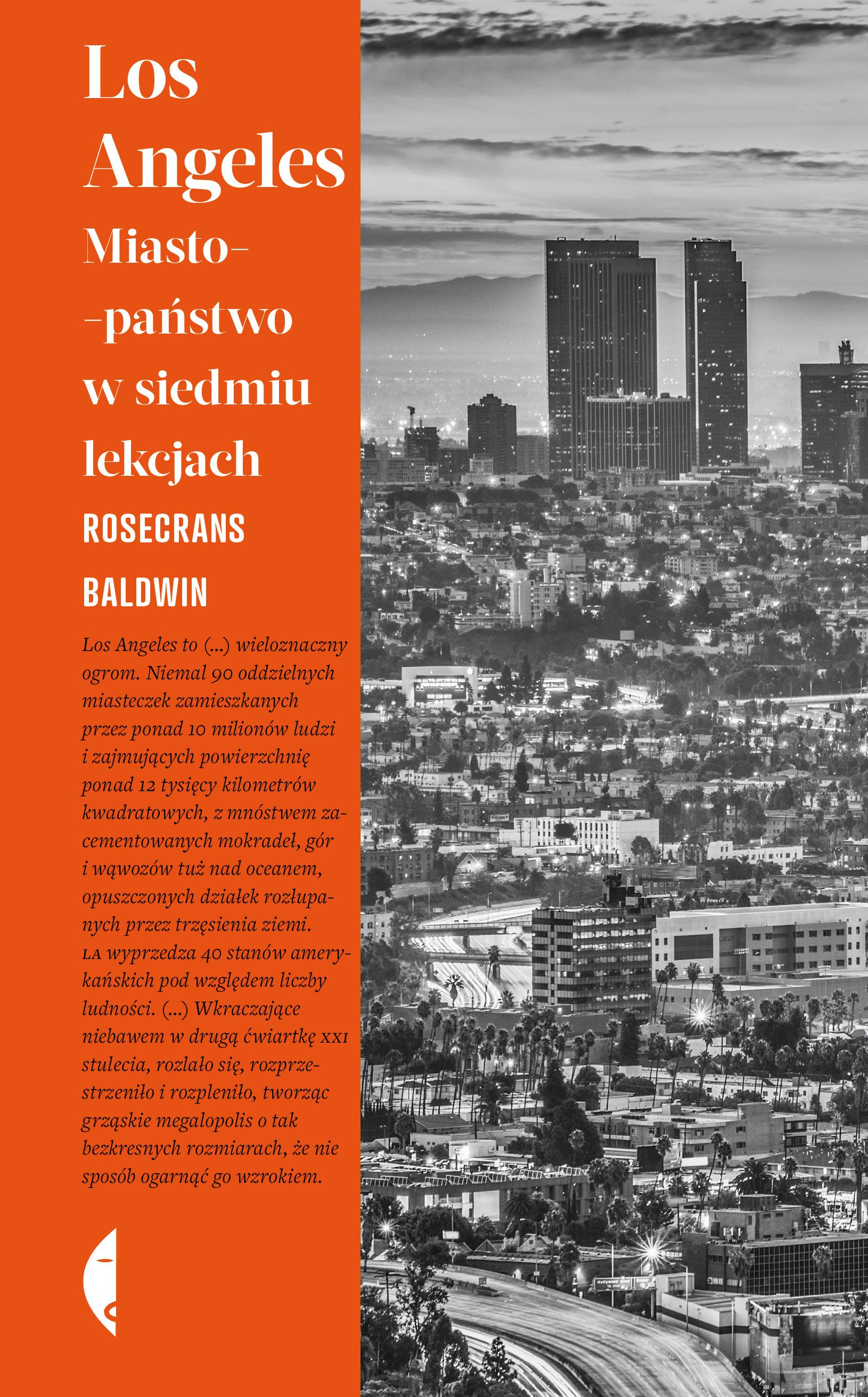 LA w ogóle nie jest jak miasto, za bardzo się rozciąga” – mówi jedna z rozmówczyń Baldwina. Bo jak nazwać największy amerykański organizm polityczny niebędący stanem? Los Angeles to liczące osiemdziesiąt osiem miast „państwo narodowe” zamieszkiwane przez około jedenaście milionów ludzi mówiących w niemal dwustu językach. Czy LA można w ogóle zdefiniować? Rosecrans Baldwin przez kilka lat pracował nad książką, w której stara się odpowiedzieć na pytanie urbanisty Douglasa Suismana: „Czy miasto może być miastem, wcale nim nie będąc?”. Odnosząc się zarówno do literatury, jak i własnych obserwacji i rozmów, rozwija koncepcję Los Angeles jako miasta-państwa, zestawiając Miasto Aniołów z antycznymi megalopolis. Los Angeles to także znakomity reportaż o przestrzeni kontrastów, gdzie sąsiadują ze sobą centra ubóstwa i zamożne zamknięte osiedla, bezdomni i celebryci, apokaliptyczne pogorzeliska i bajeczne plaże, przeludnienie i samotność. Dzięki siedmiu lekcjom Baldwina możemy choć trochę zrozumieć miasto, które każdego dnia wymyśla siebie na nowo. „Nie sposób napisać o Los Angeles książki totalnej. Rosecrans Baldwin nawet nie próbuje. I właśnie dzięki temu stworzył tak świetną opowieść o tym mieście.” Alexandra Jacobs, „The New York Times Book Review” „W tej czułej i wnikliwej książce […] Baldwin nie stara się wypracować jakiejś spójnej teorii na temat Los Angeles […]. Jak więc autorowi udaje się uchwycić charakter tego nader złożonego miasta-państwa? Jako wytrwały i wnikliwy obserwator Baldwin wydobywa niewidzialne LA spod pokładów mitologii, popkultury i medialnych klisz.” Marc Weingarten, „The Wall Street Journal” „To książka przełamująca granice gatunkowe, łącząca reportaż z osobistymi wspomnieniami, która doczekała się pochwał jako jedna z najlepszych propozycji o tym mieście. Autor stworzył opowieść pełną zachwytu nad tajemnicą Los Angeles.” Geoffrey Gagnon, „GQ”