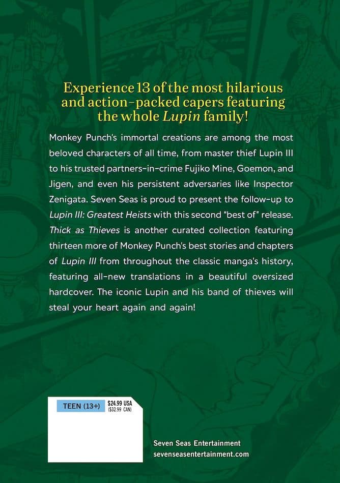 Monkey Punch’s immortal creations are among the most beloved characters of all time, from master thief Lupin III to his trusted partners-in-crime Fujiko Mine, Goemon, and Jigen, and even his persistent adversaries like Inspector Zenigata. hick as Thieves is another curated collection featuring thirteen more of Monkey Punch’s best stories and chapters of Lupin III from throughout the classic manga’s history, featuring all-new translations in a beautiful oversized hardcover.Szczegółowe informacje na temat książki Lupin Iii Thick As Thieves wer. angielska