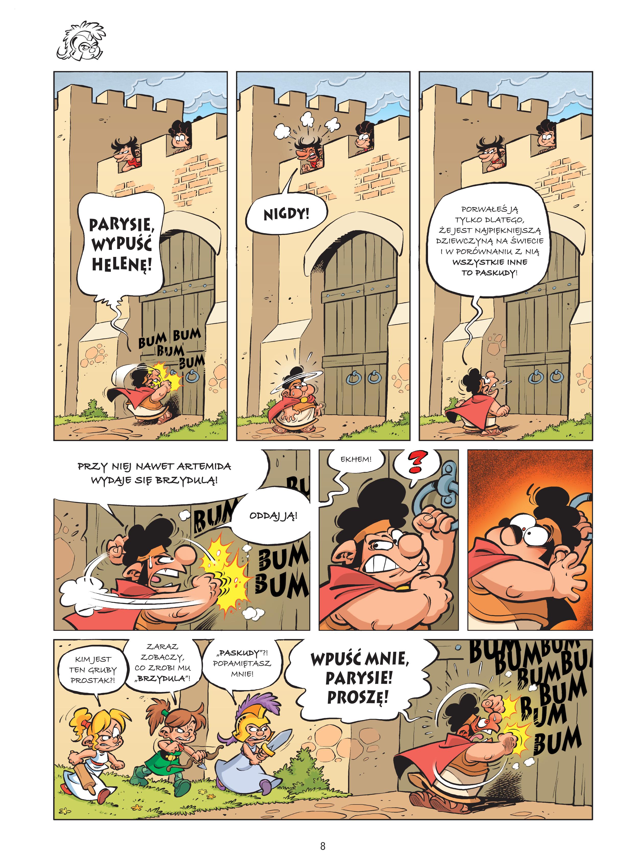 Czwarty album wesołych przygód kandydatów na bogów i herosów, którzy starają się wykazać, aby zasłużyć sobie na miejsce na Olimpie. Mali bohaterowie zawsze dobrze się bawią, ale teraz mają jeszcze więcej rozrywki niż zwykle, bo obserwują, jak Grecy nieporadnie próbują zdobyć Troję. Tymczasem Odyseuszowi wciąż coś uniemożliwia odbycie rejsu dookoła świata, Atena uczy się dowodzić armiami, a Herakles szuka nadludzkiej siły tam, gdzie nikt by jej nie szukał. Z kolei niereformowalny Taurusek gra na nerwach nawet potężnym niebianom – Zeusowi i Posejdonowi. On to ma poczucie humoru! Autorami historii o psotnych istotach z mitów są scenarzysta Christophe Cazenove, znany w Polsce między innymi z bestsellerowej serii „Sisters”, oraz rysownik Philippe Larbier, który stworzył ilustracje do takich humorystycznych opowieści jak „Chats, chats, chats” czy „Nina” oraz scenariusz kryminalnego cyklu dla dzieci „Les Enigmes de Léa”.Szczegółowe informacje na temat książki Mali Bogowie. Tom 4. Komedia Posejdona