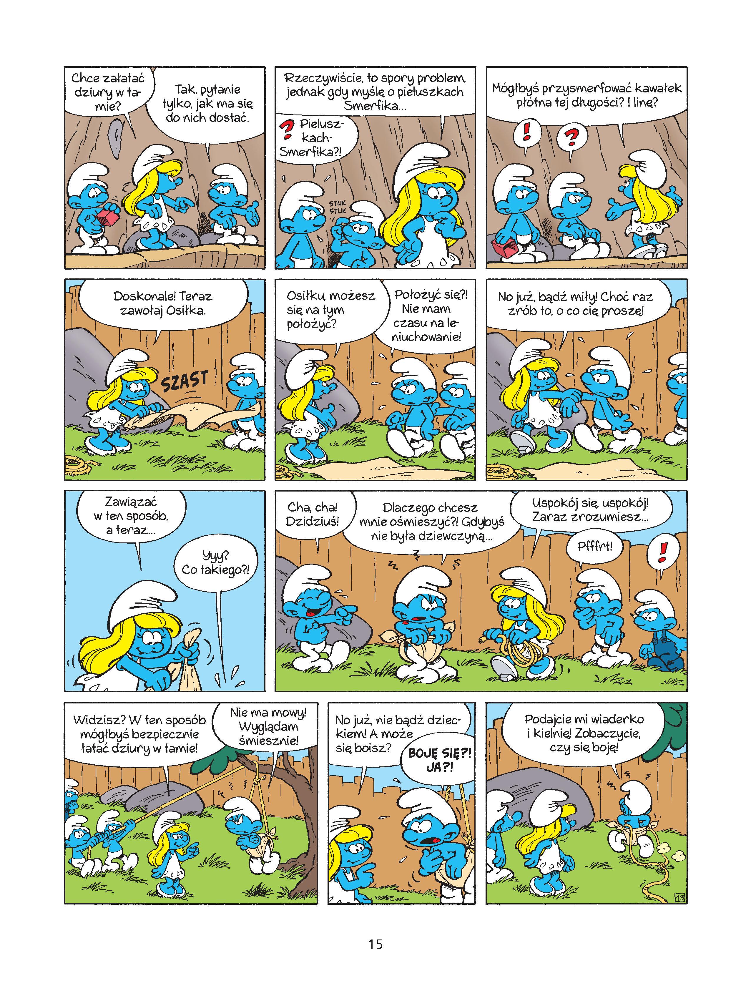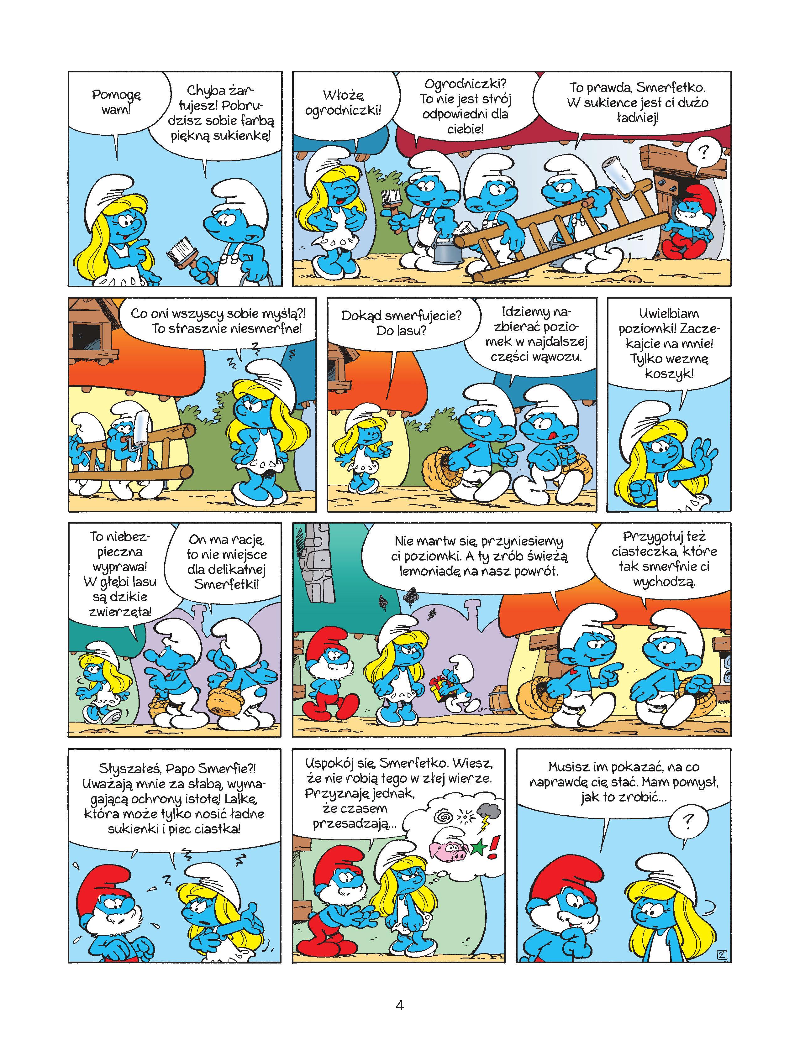 W zaczarowanej krainie Smerfów ciągle dochodzi do niezwykłych zdarzeń – czasem śmiesznych, a czasem strasznych! Smerfetka jest jedyną dziewczyną w wiosce niebieskich skrzatów, wszyscy więc dbają, żeby nie się przemęczała ciężką pracą ani nie narażała się na niebezpieczeństwa czyhające w lesie... Ale ona ma już dość prania, prasowania i pieczenia ciastek! Chce robić te same rzeczy co chłopcy, bo nie jest delikatna jak lalka! Papa Smerf wymyśla sprytny sposób, aby Smerfetka mogła udowodnić, na co naprawdę ją stać. Czy uda się jej wypełnić zadanie? Może być trudno, bo zbliża się wielkie zagrożenie ze strony Gargamela i innych czarowników... Smerfy wymyślił belgijski scenarzysta i grafik Pierre Culliford (1928–1992) używający pseudonimu Peyo. Obecnie autorami serii są następcy Peyo, w tym jego syn Thierry.