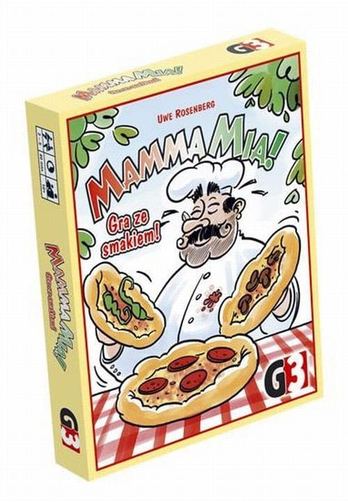Tu pizza z salami, tam Bombastica. Hej! Kto ukradł ser?! Gracze wcielają się w role kucharzy przygotowujących pizze. W tym celu zagrywają do pieca karty składników. Od czasu do czasu mogą zagrać na stos karty zamówień. Jeżeli składniki niezbędne do ich zrealizowania są dostępne, to pizza zostaje upieczona, jeżeli nie, muszą spróbować ponownie. Przemyślane taktyki, szczypta szczęścia oraz dobra pamięć mogą zapewnić Wam zwycięstwo! Mamma Mia! to prosta gra karciana, która sprawi, że pocieknie Wam ślinka! Gra ze smakiem! W 2000 roku GAMES MAGAZINE przyznał grze tytuł Best Memory Game (Najlepsza gra pamięciowa). PUDEŁKO ZAWIERA: 106 kart instrukcja Liczba graczy: 2 - 5 Wiek graczy: od 10 lat Czas gry: 40 min.