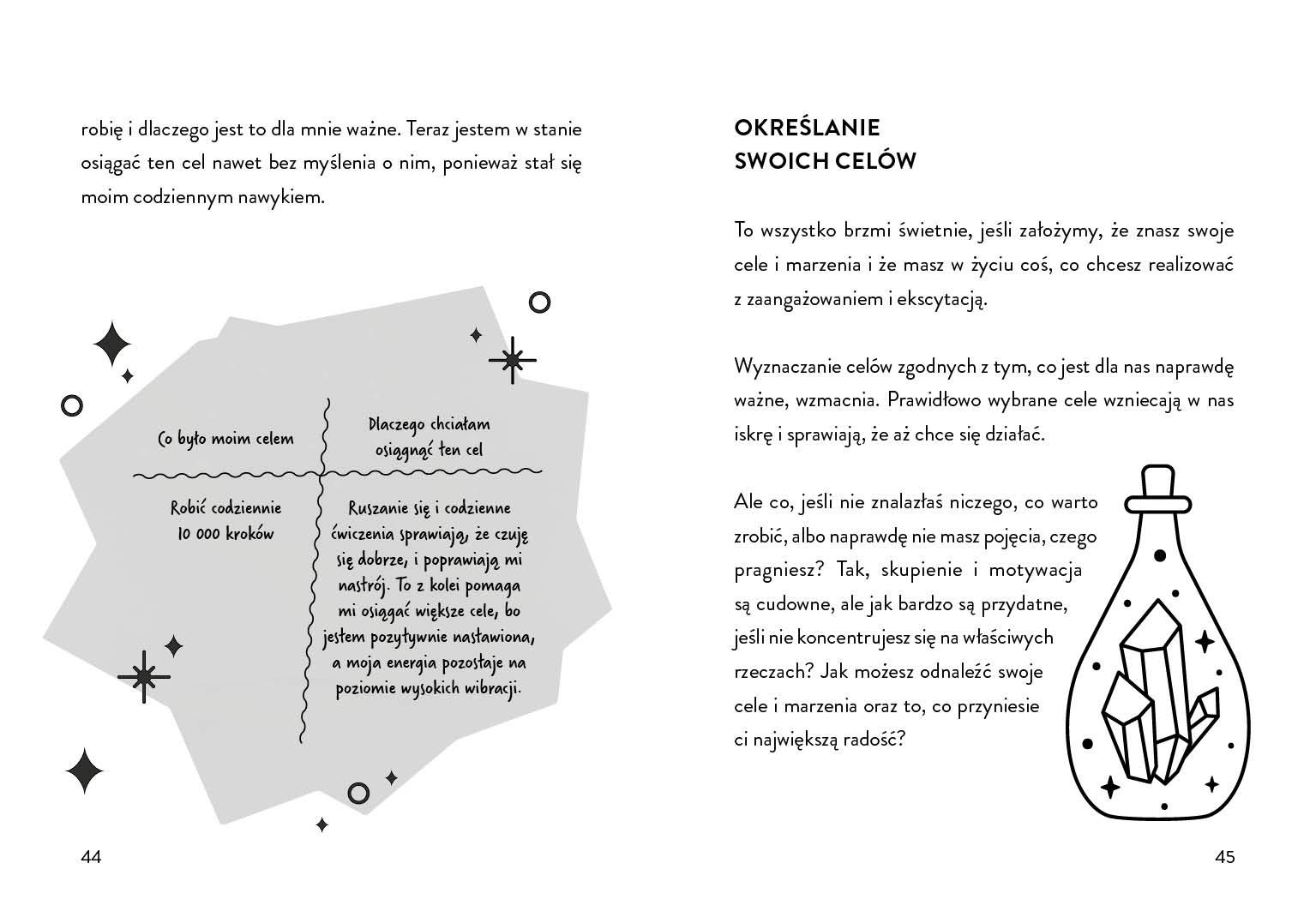 Inspirujący przewodnik, który wprowadzi Cię w świat manifestacji – praktyki, dzięki której możesz przyciągnąć do swojego życia to, czego pragniesz najbardziej. Miłość, spokój, sukces, spełnienie i codzienna radość są na wyciągnięcie ręki, jeśli tylko nauczysz się właściwie ukierunkować swoje myśli i energię. Autorka książki stworzyła idealny poradnik dla osób, które dopiero zaczynają swoją przygodę z manifestacją. Dzięki prostemu językowi, przystępnym wyjaśnieniom i pięknym ilustracjom czytelnik z łatwością odnajdzie się w tej niezwykłej filozofii życia. Książka prowadzi przez dziesięć kroków, które pokazują jak rozpoznać swoją wartość, określić swoje cele, zaufać wszechświatowi, zmienić sposób myślenia, działać z pozytywną energią, czuć wdzięczność, żyć w harmonii i stworzyć własną codzienną rutynę manifestacji.