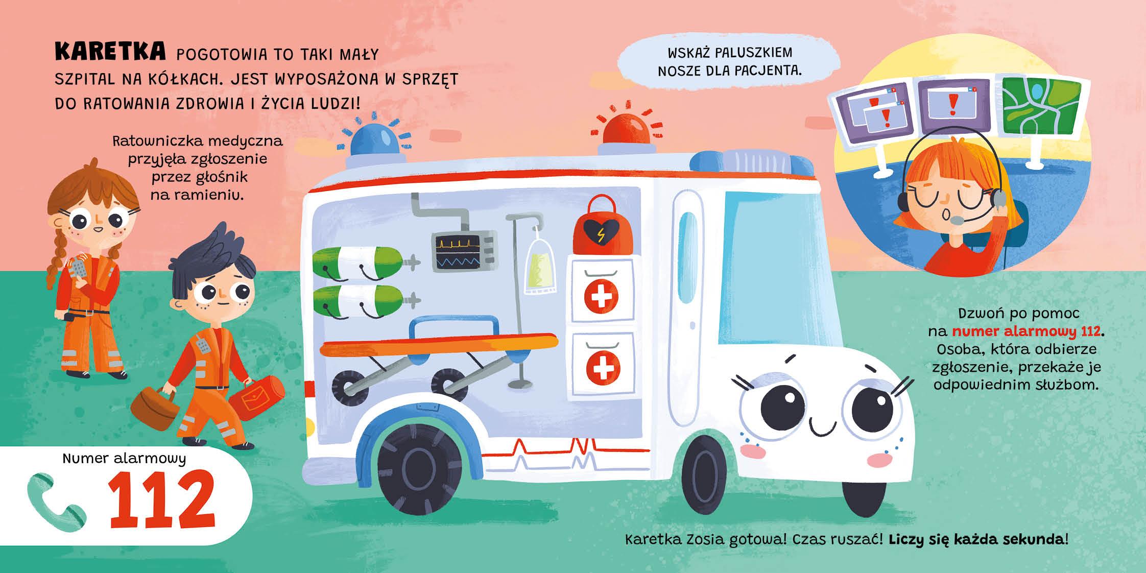 Gdzie można spotkać karetkę? Do czego służy? Dlaczego jest bardzo ważnym pojazdem? W tej książeczce znajdziesz odpowiedzi na wszystkie pytania. „Maszyny i pojazdy” to seria prostych boardbooków, dzięki którym dziecko pozna różne pojazdy, które na co dzień można zobaczyć na placu budowy i w mieście oraz te, które pracują w kosmosie. Krótkie historyjki przedstawiają zadania za jakie odpowiadają poszczególne maszyny. Ale to nie wszystko! W tekst wplecione zostały propozycje zabaw aktywizujących. Kolorowe i wesołe ilustracje wspaniale pokazują różne maszyny i pojazdy, a kartonowe strony i zaokrąglone rogi gwarantują małym rączkom bezpieczeństwo podczas oglądania książeczek.