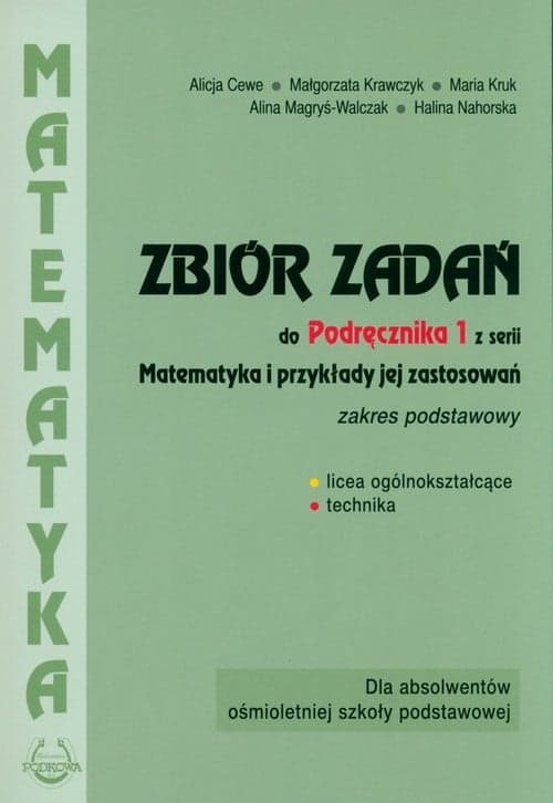 Matematyka Zbiór zadań 1 Zakres podstawowy Szkoła ponadpodstawowa. Liceum i technikum Cewe Alicja, Krawczyk Małgorzata, Kruk Maria, Magryś-Walczak Alina, Nahorska Halina Książka