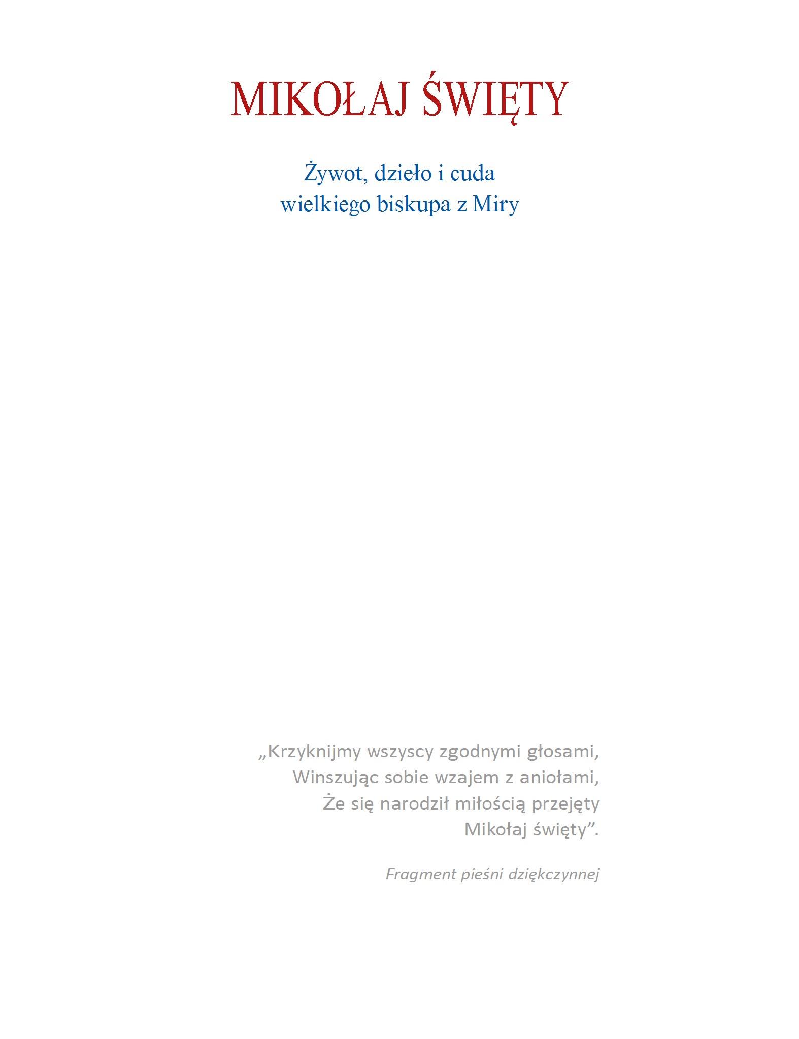 O książce Mikołaj Święty Żywot, dzieło i cuda wielkiego biskupa z Miry