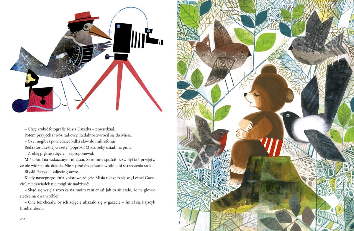 Miś Uszatek w 2017 roku obchodzi 60. urodziny! Z tej okazji postanowiliśmy przygotować specjalne wydanie jego przygód, zawierające trzy najpopularniejsze tomy opowiadań z kompletem ilustracji. Postać Misia Uszatka po raz pierwszy pojawiła się w opowiadaniach publikowanych w czasopiśmie dla najmłodszych „Miś”. Imię Uszatkowi nadały dzieci w wyniku konkursu, a postać stworzyli pisarz Czesław Janczarski i ilustrator Zbigniew Rychlicki. Pierwsza książka o jego przygodach została wydana w 1960 pod tytułem „Przygody i wędrówki Misia Uszatka”. W kolejnych latach ukazały się jeszcze cztery tomy. To był jednak dopiero początek popularności misia o klapniętym uszku. W 1975 roku Semafor rozpoczął produkcję lalkowego serialu, który do 1987 roku liczył już 104 odcinki i okazał się prawdziwym hitem. Imieniem Misia nazywano przedszkola i klubiki, książki tłumaczono na języki obce, był bohaterem audycji radiowych i programów telewizyjnych w Polsce i na świecie. Czesław Janczarski ( ur. 1911 – zm. 1971) – poeta, tłumacz, autor książek dla dzieci, młodzieży i dorosłych. Studiował na Wydziale Matematyczno-Fizycznym uniwersytetu we Lwowie i na Uniwersytecie Warszawskim, gdzie ukończył filologię polską. Był animatorem grupy poetyckiej „Wołyń”. Zadebiutował zbiorem „Akwarelą: poezje” w 1933 roku. Pierwszy wiersz dla dzieci opublikował w pisemku „Słonko” w 1936 roku. Od tego czasu stale współpracował z pismami dziecięcymi „Poranek”, „Płomyczek” i „Mały Płomyczek”, dla których tłumaczył również teksty z języka rosyjskiego. Pracował w wydawnictwach „Czytelnik” i „Nasza Księgarnia”, a także jako redaktor audycji poetyckich w Polskim Radiu. Był założycielem i redaktorem naczelnym pisma dla najmłodszych „Miś”. Opublikował ponad 90 książek dla dzieci, młodzieży i dorosłych, pisanych wierszem lub prozą, nie licząc publikacji w prasie, radiu i telewizji. Wśród jego wielokrotnie wznawianych utworów dla dzieci trzeba wymienić „Jak Wojtek został strażakiem”, „Gdzie mieszka bajeczka”, „Płynie Wisła, płynie…” oraz najbardziej lubiany i znany cykl o przygodach Misia Uszatka. Był laureatem licznych nagród. W 1957 roku otrzymał Złoty Krzyż Zasługi za twórczość dla dzieci. Zbigniew Rychlicki (ur. 1922 – zm. 1989) – wybitny ilustrator i twórca plakatów, wieloletni dyrektor do spraw artystycznych Instytutu Wydawniczego „Nasza Księgarnia”. Odpowiadał również za stronę graficzną czasopisma „Miś”. Laureat m.in. Nagrody im. Hansa Christiana Andersena (1982) przyznawanej przez IBBY. Kawaler Orderu Uśmiechu. Spośród jego najsłynniejszych prac należy wymienić ilustracje do „Proszę słonia” Ludwika Jerzego Kerna, „Plastusiowego pamiętnika” Marii Kownackiej, „Czarnoksiężnika ze Szmaragdowego Grodu” i innych powieści o krainie Oz Lymana Franka Bauma. Najwięcej rozgłosu przyniósł mu jednak wizerunek znanego wszystkim dzieciom misia o klapniętym uszku. Niedawno w serii „Mistrzowie ilustracji” Wydawnictwa Dwie Siostry ukazał się „Michałek z pudełka od zapałek” Ericha Kästnera z pracami Zbigniewa Rychlickiego – pierwotnie wydany przez Instytut Wydawniczy „Nasza Księgarnia” (1966).