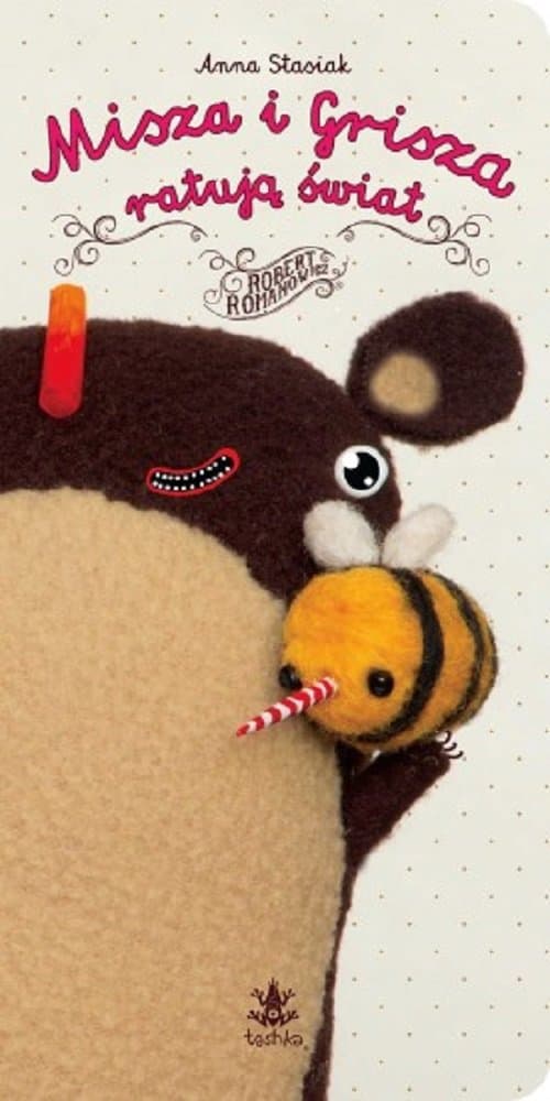 Początkiem każdego twórczego działania jest pomysł. Wspomagany wyobraźnią i talentem może rozwinąć się z jednego obrazu w ciekawą opowieść. Tak było w przypadku Miszy i Griszy – bohaterów powołanych do życia przez Roberta Romanowicza, artystę malarza, grafika, twórcę ilustracji do książek dla dzieci, fotografika i rzeźbiarza. Jego obraz stał się inspiracją do opowiedzenia o przyjaźni, odwadze i oddaniu. O tym, że przygoda może zdarzyć się wszędzie, a bohaterem może zostać każdy – nawet mały pluszowy miś. Wykonana ręcznie, a następnie sfotografowana scenografia złożyła się na niezwykłe ilustracje. Do jej stworzenia posłużyły różne, z pozoru nieprzydatne już materiały: skrawki tkanin, fragmenty nici, muliny, kawałki drewna, korka, druciki, gałązki, resztki filcu... Recyklingowy rodowód mają też główni bohaterowie. Historia Miszy i Griszy pobudza dziecięcą wyobraźnię, rozwija kreatywność, uczy wrażliwości na przyrodę i pomaga w nauce liczenia. Tekst: Redakcja -------------------- Razem łatwiej Nie zostawia się przyjaciela w potrzebie, nie można być obojętnym na fakt, że przyroda jest zagrożona… Tak w skrócie można podsumować treść najnowszej książki wydawnictwa Tashka. Choćby się było pluszowym misiem i choćby przyjaciela poznało się kilka chwil temu. Niedźwiadek o imieniu Misza, wiedziony głodem, rusza na spacer po lesie. Zamiast ulubionego miodku znajduje… pszczółkę Griszę, która opowiada mu o swoim zmartwieniu. Razem postanawiają uratować świat przed wielką burą chmurą (smogiem?). Ta prosta historia z łatwością trafi do dzieci. Pomogą w tym przepiękne ilustracje Roberta Romanowicza. Artysta ręcznie wykonał trójwymiarowych bohaterów i scenografię, a następnie to wszystko sfotografował, kreując poszczególne kadry. Świat zbudowany z nieskomplikowanych przedmiotów, może nawet takich, które wielu uznałoby za bezwartościowe, jest dowodem na to, że tworzyć można ze wszystkiego; że najważniejszy jest pomysł, a materiały właściwie każdy znajdzie u siebie w domu lub podczas jednego spaceru: nici, skrawki materiałów, patyczki, guziki… Fotografie sprawiają, że postacie stają się niemal realne, a książka nosi znamiona quasi-reportażu. Aż chciałoby się misia pogłaskać, aż chciałoby się wejść do tego świata… Tekst Anny Stasiak jest rymowany, melodyjny. Oprócz optymistycznej fabuły niesie w sobie jeszcze walor edukacyjny – troskę o środowisko naturalne i naukę liczenia do dwunastu. Misza i Grisza przejęli się losem świata i postanowili go uratować przed czymś, co w języku dorosłych moglibyśmy nazwać katastrofą ekologiczną. Powtarzalne czynności lub przedmioty – można liczyć wszystko. Autorka umiejętnie wplotła w tekst kolejne cyfry. Małe dzieci z radością je śledzą i podejmują zabawę, a każde dobrze wykonane rachowanie sprawia im wiele satysfakcji. Książeczkę można czytać i oglądać wielokrotnie, a pomoże w tym jej kartonowa forma. By zabawa mogła trwać dłużej… Polecam! Recenzja: Agata Hołubowska
