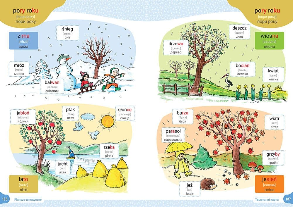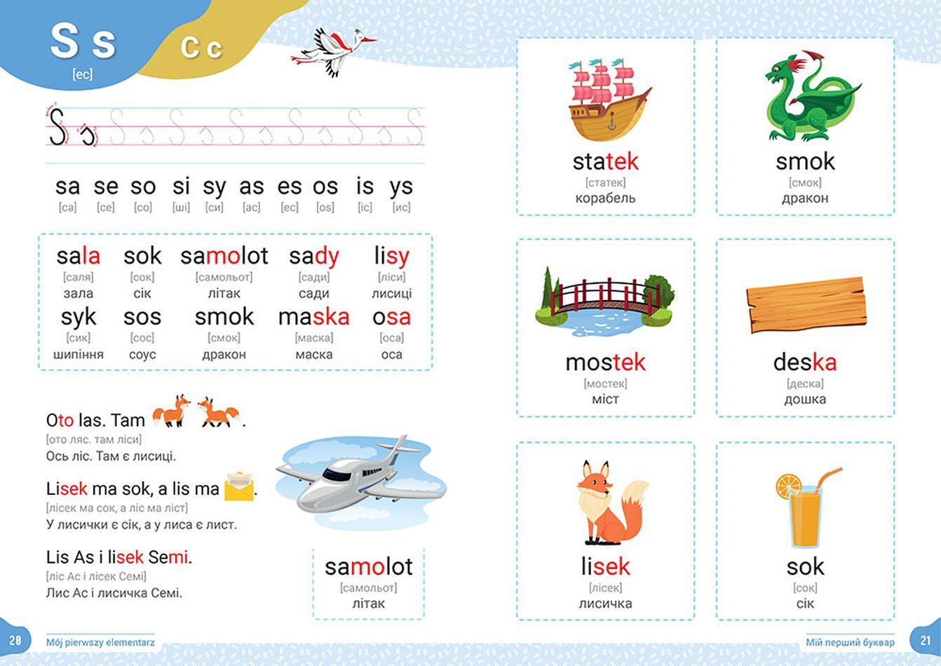 Nie z naszym Moim pierwszym elementarzem polsko-ukraińskim - dzięki niemu dzieci sprawnie nauczą się czytać po polsku i opanują polski alfabet bez problemu! Każdą stronę zaprojektowano tak, by pokazać polską literkę, sposób jej użycia w sylabach i wyrazach oraz jej wersję pisaną. Każdy element języka polskiego jest zapisany w języku ukraińskim, aby można było zrozumieć jego znaczenie i prawidłowo przeczytać. Strony skonstruowane są według tego samego schematu, co ułatwia korzystanie z książki.