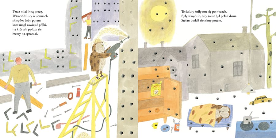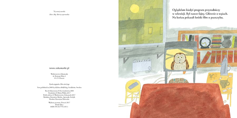 Pierwszy raz zobaczyłam go w telewizji w programie przyrodniczym. Potem spotkaliśmy się przed sklepem. Rozerwała mu się torba, więc pomogłam mu pozbierać zakupy z chodnika. Przez jakiś czas zarabiał wierceniem dziur, ale dziury zaczęły mu się śnić po nocach. Ma na imię Stefan. Jesteśmy przyjaciółmi. „Najbardziej codzienna codzienność i kompletny odlot!” Dagens Nyheter „Historia tyleż oryginalna, co urzekająca”. Östgöta Correspondenten Eva Lindström to bardzo ceniona w Szwecji autorka książek obrazkowych, której niepowtarzalny styl zarówno tekstu, jak i ilustracji nie pozostawia czytelnika obojętnym, czego doskonałym przykładem może być właśnie „Mój przyjaciel Stefan". Eva Lindström jest również autorką i ilustratorką zbioru opowiadań dla starszych dzieci „Mats i Roj. Ktoś się wprowadza".