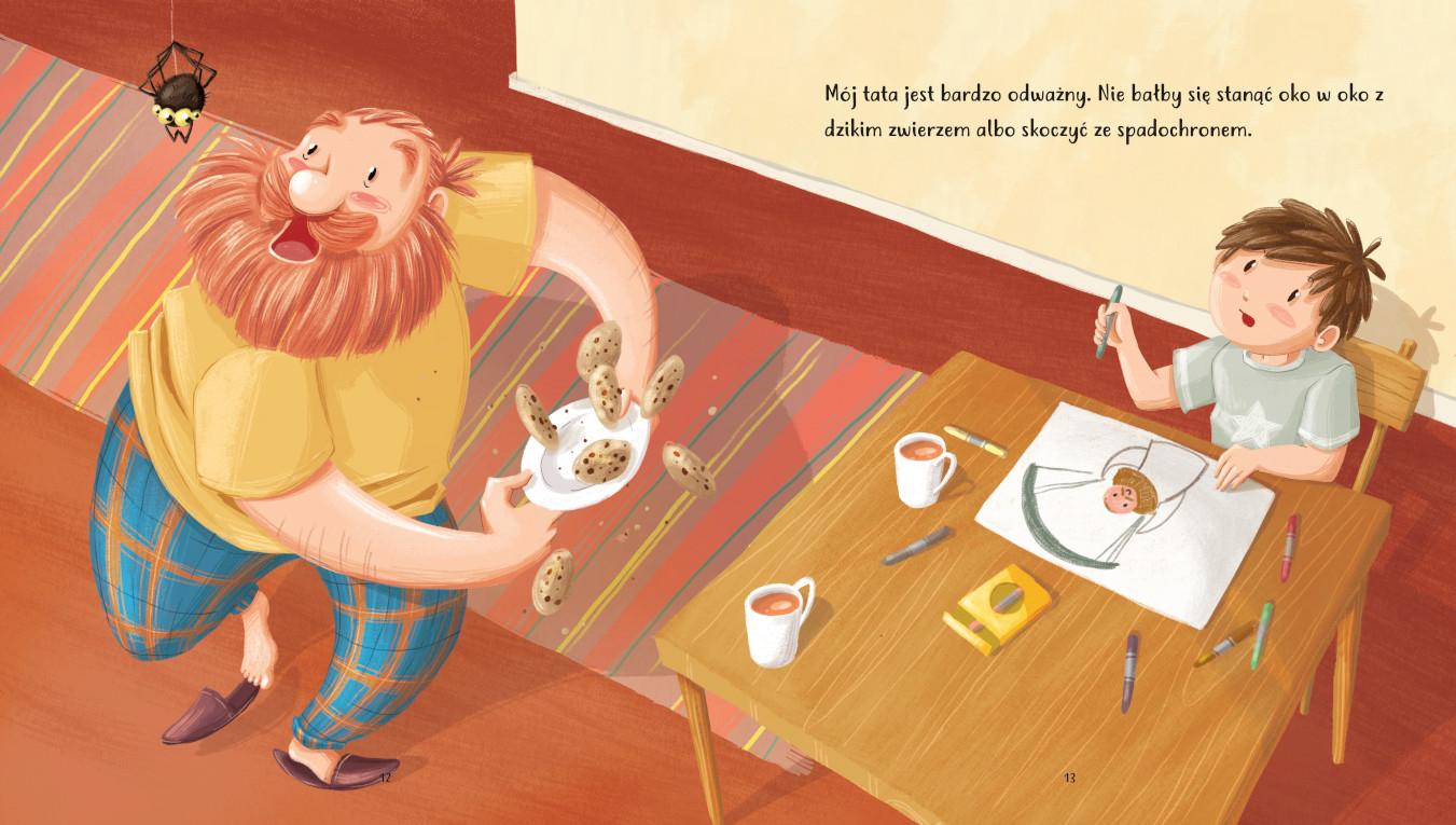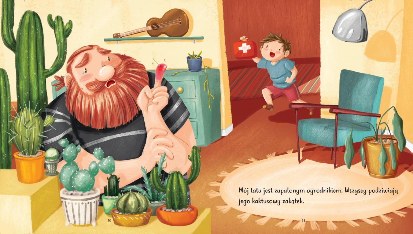 Dla każdego dziecka tata jest najlepszy na świecie. Nawet jeśli potrafi ugotować tylko jajko, to i tak jest najwspanialszym kucharzem. Gdy tańczy z kijem od szczotki, wygląda jak prawdziwa gwiazda. Buduje głównie z plasteliny? Nic nie szkodzi – jest najlepszym budowniczym! A przede wszystkim tata jest zawsze blisko: przytula, kocha i sprawia, że wszystko staje się lepsze. Przed wami wspaniała książka, która zachęca ojcu do czytania razem z dziećmi i wspólnego spędzania czasu. Bo skoro książka jest o tacie, to musi czytać ją właśnie tata. A podczas tego czytania na pewno będzie wiele wygłupów, śmiechu i czułości. Bo z tatą nic nie jest nudne. Pani Katarzyna Biegańska kolejny raz tworzy książkę o tacie. Fabuła jest dość krótka i prosta. Każda strona to parę zdań opisujących tatę. Mój tata jest utalentowanym sportowcem... mój tata jest prawdziwym artystą... i tym podobne. Do tego mamy przepiękne ilustracje autorstwa Doroty Prończuk. Choć ilustracje są szczegółowe, nie mają ostrych, twardych linii. Są miękkie, jakby delikatnie rozmyte, kojarzące się z pastelowymi rysunkami, a do tego koloru są ciepłe i starannie dobrane. Dzięki temu rysunki emanują ciepłem, są przyjemne dla oka i estetyczne. Oczywiście poczucie estetyki jest kwestią indywidualną, ale ten styl trafia w mój gust w stu procentach. Myślę,że każda z nas znajdzie jakieś mniejsze lub większe wady dla swoich partnerów, ale dla dziecka tata jest ogromnie ważny nawet jeśli czegoś nie potrafi. A ta książka nam wszystkim przypomni o tym że każdy z rodziców pełni troszkę inną rolę, a dzięki temu że się różnią tworzą wspaniałego człowieka jakim jest nasze dziecko. Warto ją kupić ze względu na wspólny czas z dzieckiem i dla taty, który na pewno poczuje się i miło, gdy zostanie doceniony.