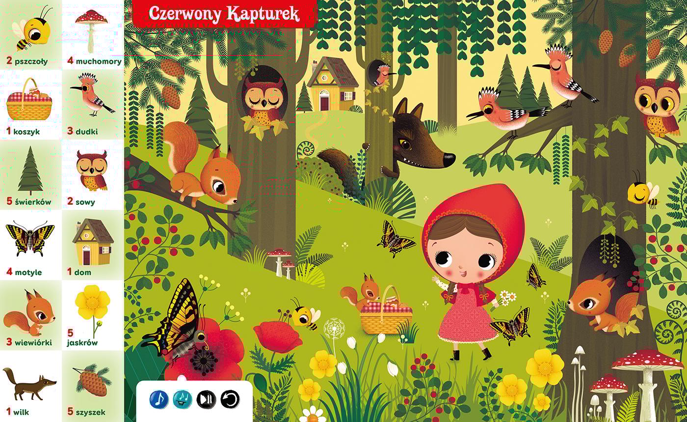 Wyszukaj i policz bajkowe postaci oraz rzeczy! Rozwijaj wyobraźnię, słuchając bajek!