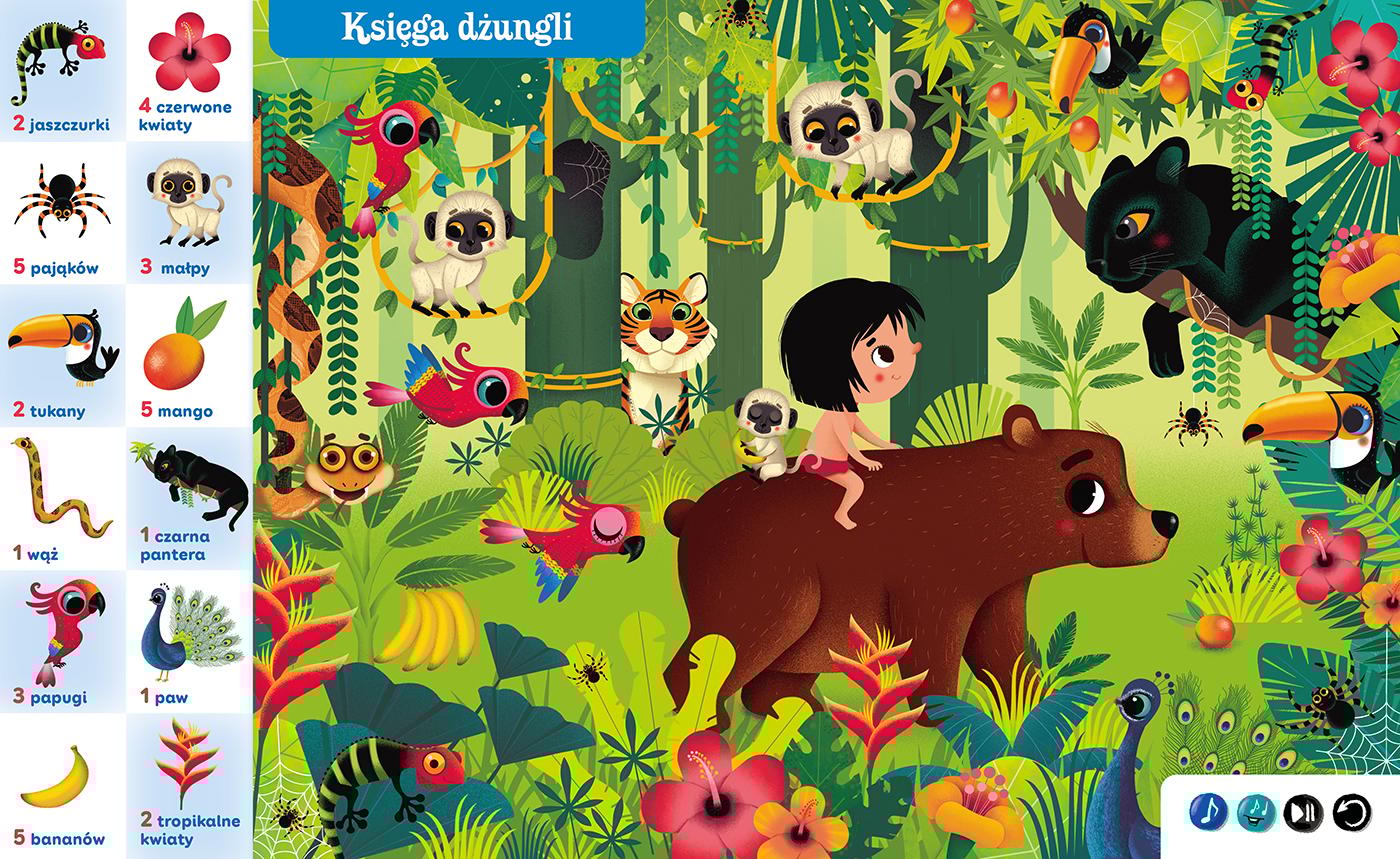 Maluchy bawiąc się, rozwijają spostrzegawczość i nabierają wprawy w liczeniu do pięciu. Poznają także około 100 słów na uroczych i pełnych szczegółów ilustracjach.