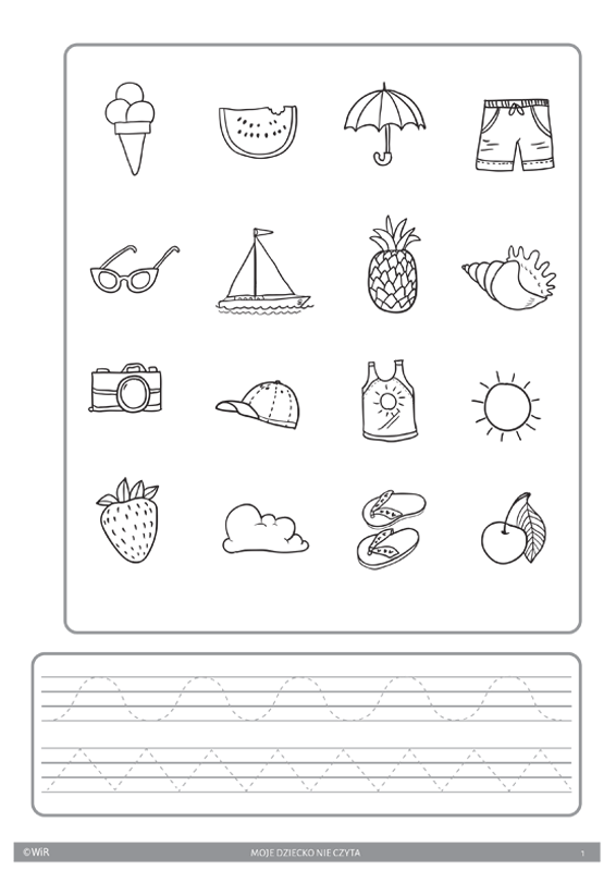 Różnorodna forma ćwiczeń angażuje dziecko do wodzenia wzrokiem, powtarzania, nazywania, pisania, dopasowywania elementów obrazkowych i literowych.
