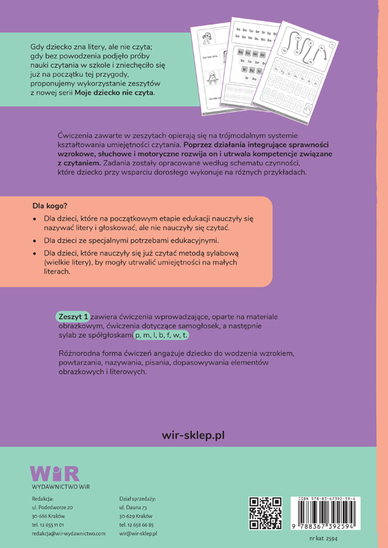 Gdy dziecko zna litery, ale nie czyta; gdy bez powodzenia podjęło próby nauki czytania w szkole i zniechęciło się już na początku tej przygody, proponujemy wykorzystanie zeszytów z nowej serii Moje dziecko nie czyta.