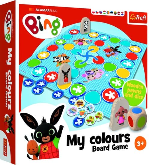 Gra Moje kolory Bing dla najmłodszych z drewnianymi elementami! Przemierzajcie trasę w poszukiwaniu żetonów wraz z bohaterami bajki Bing. Sprawdźcie, w którą stronę pokieruje Was kostka, i jak szybko osiągniecie cel. Bądźcie czujni – w każdej chwili możecie stracić zdobyty już żeton. Udanej przygody! Wiek graczy: 3+ Liczba graczy: 2-3 Czas rozgrywki: 20 minut