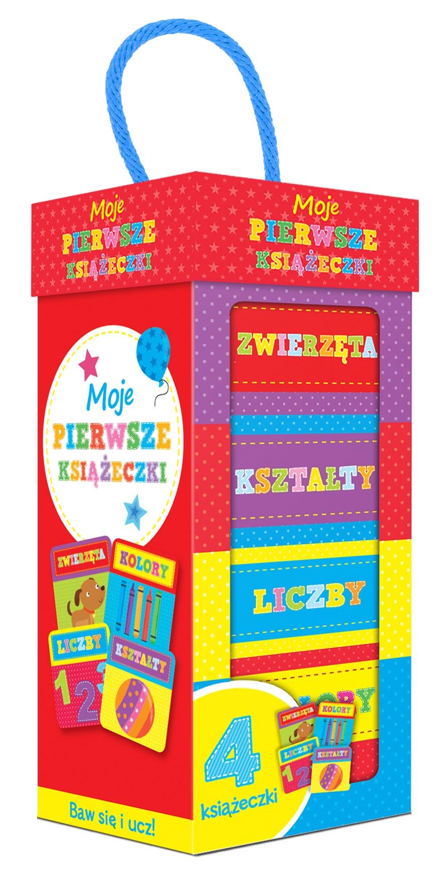 Baw się i ucz! Cztery mini książeczki, dzięki którym dziecko pozna i nauczy się pierwszych słów związanych ze światem zwierząt, kolorów liczb i kształtów. Książeczki spakowane są w kolorowym i praktycznym pudełku na sznureczku, dzięki czemu dziecko może je wszędzie zabrać ze sobą.