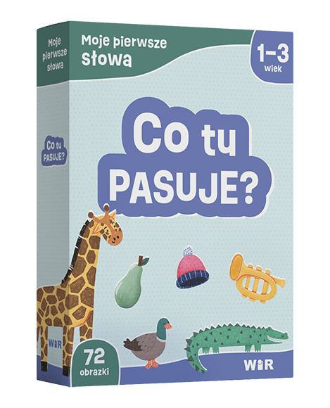 Moje pierwsze słowa. Co tu pasuje? to zestaw edukacyjny, który poprzez zabawę wspiera rozwój językowy i poznawczy małych dzieci.