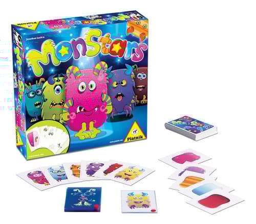Potwornie zwariowana gra ćwicząca refleks i spostrzegawczość - Cóż to za straszny zgiełk za kulisami sceny? 45 niepowtarzalnych, kolorowych stworów zebrało się na corocznym show MonStars. Zadaniem graczy, wcielających się w członków jury, jest rozpoznać wszystkie szczegóły i szybko dobrać odpowiednie karty tak, aby odtworzyć całego potworka. W grze znajdziecie 189 plastikowych kart, a wśród nich 120 przezroczystych kart z oczami, rogami, rękami, nogami i innymi częściami ciała. Przezroczyste karty ułożone na sobie pozwalają szybko stworzyć podobiznę wylosowanego stwora. Gra dla 2-4 graczy od 6 lat.