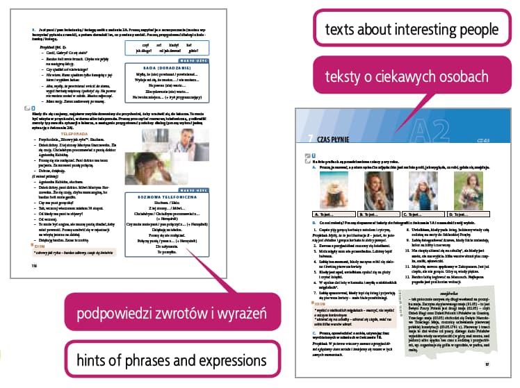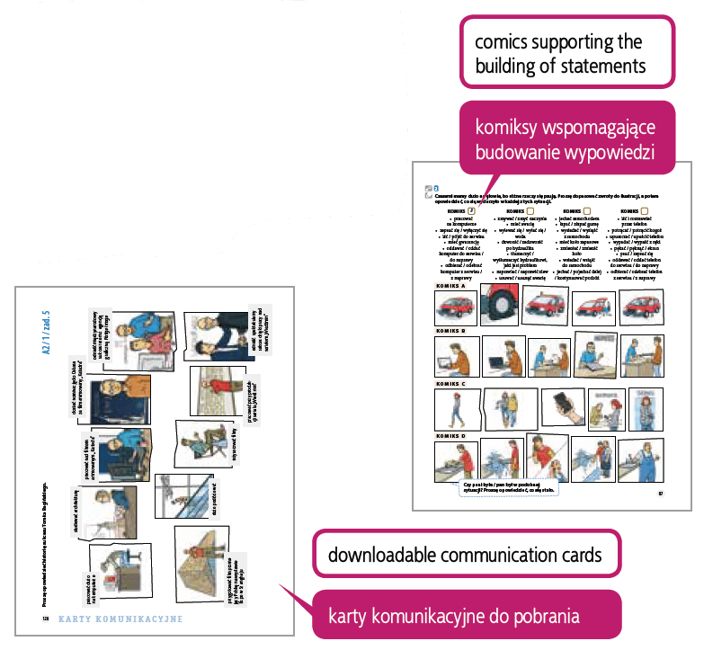 MÓWIĘ PO POLSKU. Ćwiczenia dla obcokrajowców. Poziom A1 i A2: • To podręcznik do doskonalenia sprawności mówienia. • Został przygotowany z myślą o cudzoziemcach, którzy rozpoczynają naukę albo ją kontynuują. • Pomaga w przygotowaniu się do egzaminów certyfikatowych z języka polskiego jako obcego. • Gotowe jednostki lekcyjne są przeznaczone na poziomy A1 i A2. • Obejmuje zagadnienia zawarte w „Programach nauczania”. • Składa się z 20 rozdziałów (po 10 na każdy poziom). • Jednostki lekcyjne są zbudowane według podobnego schematu: otwierają je zadania ogniskujące uwagę wokół tematu, kolejne ćwiczenia wymagają coraz większej samodzielności w tworzeniu wypowiedzi, a trzy ostatnie zadania podsumowują rozdział i przygotowują do egzaminu certyfikatowego. • Bodźcami do wypowiedzi są głównie teksty autentyczne (na przykład o znanych Polakach, popularnych miejscach, kulinariach itp.), infografiki, komiksy oraz zdjęcia i ilustracje. • Zróżnicowane techniki pracy i typy zadań pozwalają realizować podstawowe działania językowe: produktywne (monologowe) i interakcyjne (dialogowe). • Na poziomach egzaminacyjnych student ma możliwość odsłuchania nagrań z przykładowymi wypowiedziami egzaminacyjnymi. Opracowanie swoim „rozmachem” dydaktycznym przypomina w dużym stopniu kompletny podręcznik do nauki polszczyzny. To duży sukces, który pokazuje, że jego Autorkom udało się podejść do rozwijania umiejętności ustnej produkcji językowej w sposób całościowy. Moja końcowa ocena opisywanego materiału jest bardzo wysoka. Emanuje od niego profesjonalizm dydaktyczny i duże doświadczenie lektorskie jego Autorek. Powinien zająć ważne miejsce wśród nowoczesnych opracowań do nauczania polszczyzny jako języka obcego i drugiego. – z recenzji prof. dr hab. Przemysława E. Gębala Podręcznik „Mówię po polsku. Ćwiczenia dla obcokrajowców” autorstwa Moniki Gworys i Anny Mądreckiej to bardzo wartościowa, długo oczekiwana pozycja, wypełniająca poważną lukę na rynku wydawniczym w zakresie nauczania języka polskiego jako obcego. Po raz pierwszy otrzymujemy pełny zestaw materiałów dydaktycznych umożliwiający uczenie się, nauczanie i ocenianie ustnych działań językowych. – z recenzji prof. dr hab. Iwony Janowskiej