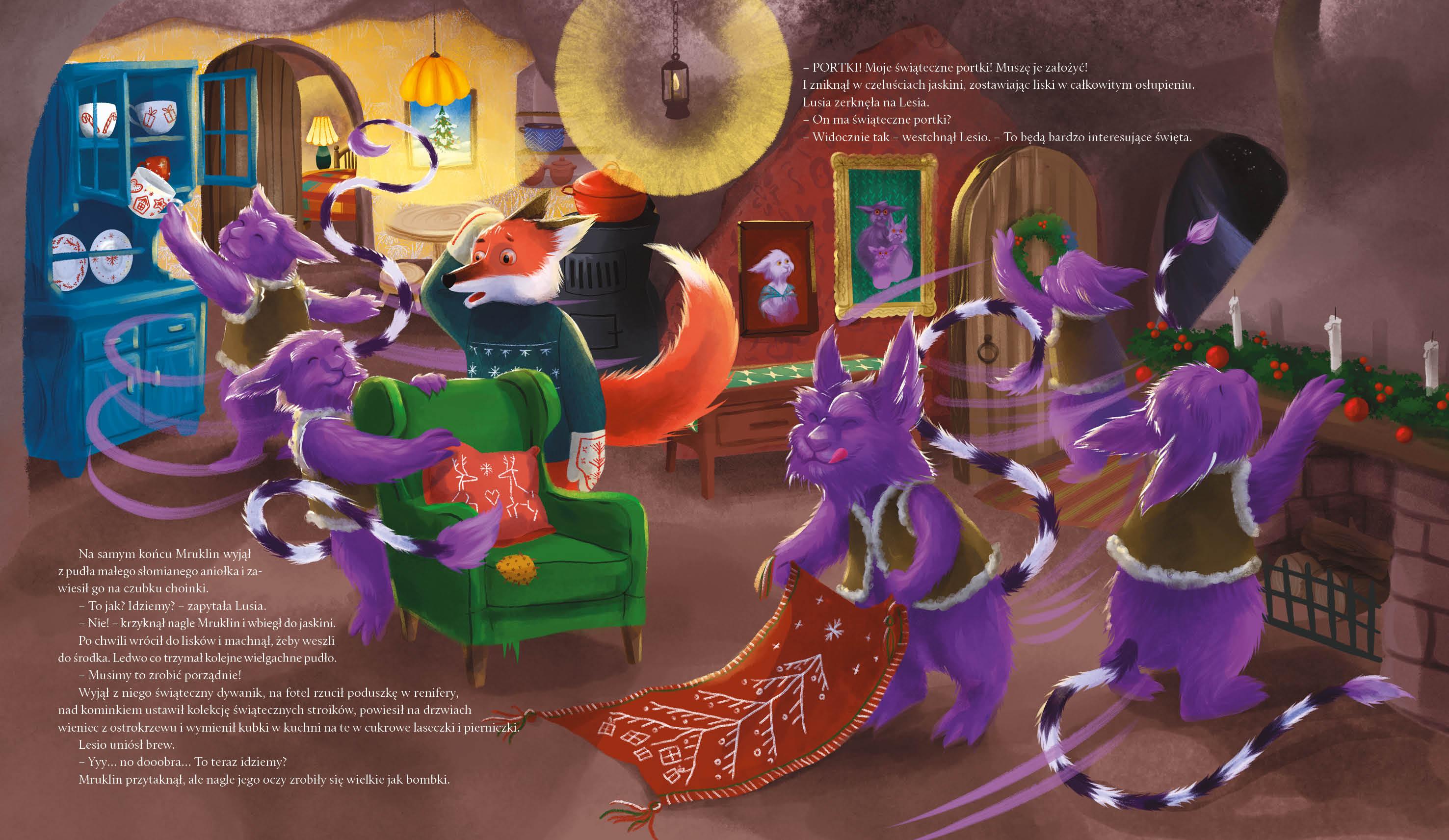 W Świerkowym Lesie wszyscy z radością przygotowują się do Świąt. Rodzeństwo lisków, Lesio i Lusia, roznoszą zaproszenia na gwiazdkowe przyjęcie, nie wiedząc, że ktoś czuje się pominięty. Mruklin – samotny stworek mieszkający w jaskini – nigdy nie został zaproszony do wspólnego świętowania. Smutny i pełen żalu postanawia… ukraść Gwiazdkę z nieba, by Święta w ogóle się nie odbyły! W Wigilię, Lesio i Lusia widząc brak Gwiazdki, obawiają się, że Mikołajowi nie uda się trafić do Świerkowego Lasu. Postanawiają ruszyć na jej poszukiwania. Trop prowadzi do jaskini Mruklina. Czy uda się uratować Święta? Ciepła, pełna emocji opowieść o przyjaźni, akceptacji i wybaczeniu.Szczegółowe informacje na temat książki Mruklin kradnie Gwiazdkę
