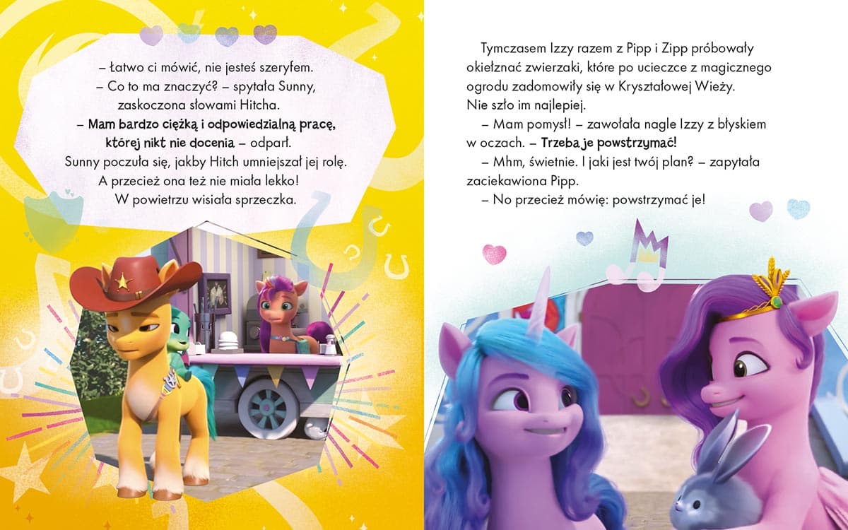 Sześć nowych, uroczych opowieści ze świata My Little Pony! Sunny, Izzy, Hitch, Pipp i Zipp ponownie zapraszają do Equestrii. Kucyki odzyskały magię, ale nie jest łatwo zapanować nad nową, tak potężną umiejętnością. W obliczu serii niepożądanych incydentów piątka przyjaciół usiłuje wspólnie wypracować sposób na kontrolowanie swojej magii. Przy okazji każdy z kucyków będzie miał okazję przekonać się, kim tak naprawdę jest i na czym najbardziej mu zależy, oraz odkryć swoje prawdziwe ja! A wszystko to w wesołym towarzystwie nowego kompana piątki bohaterów – małego magicznego smoka Sparky’ego. Tego niesfornego stwora ani na chwilę nie można spuścić z oka! Na szczęście Hitch jest bardzo zdyscyplinowanym opiekunem malucha, a Izzy nigdy nie kończą się pomysły na zabawę z nim! Książka powstała na podstawie pierwszych sześciu odcinków najnowszego serialu My Little Pony, dostępnego na Netflixie od września 2022 roku. Będzie to niezwykła gratka dla wszystkich fanów serii, ciekawych kontynuacji przygód kucyków znanych z filmu „Nowe pokolenie”!Szczegółowe informacje na temat książki My Little Pony Nowe pokolenie Bajki 5 minut przed snem