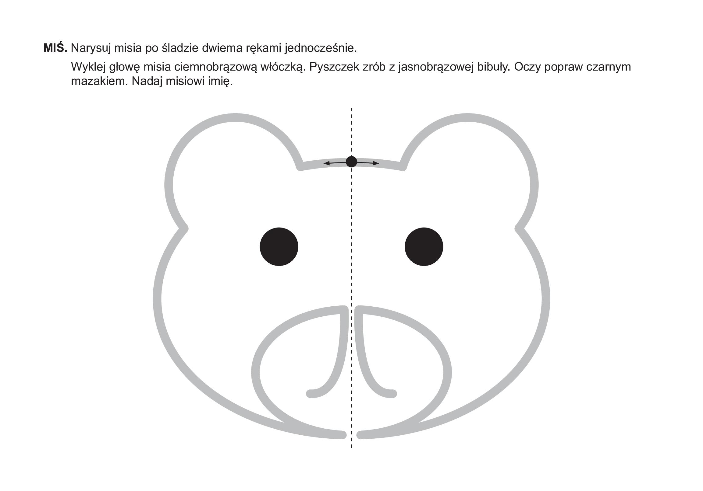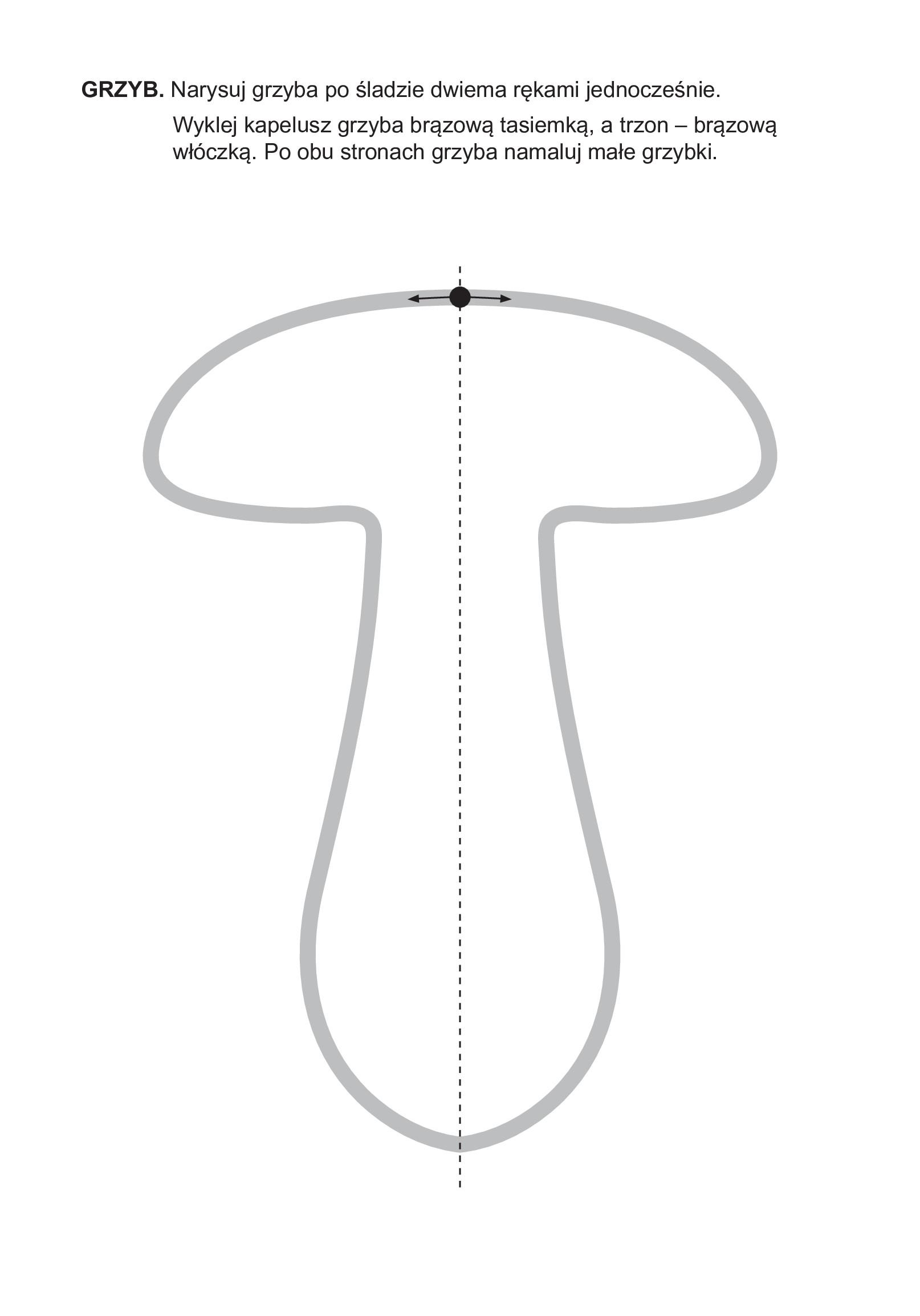 Publikacja ma formę bloku z wyrywanymi kartami. Zawiera 40 ilustracji, które dziecko powinno rysować po śladzie oburącz, a następnie pokolorować lub ozdobić zgodnie z podanymi wskazówkami lub według własnego pomysłu. Zawarte w książce ćwiczenia doskonalą sprawność obu rąk, a także wpływają na rozwój twórczych zdolności dzieci.