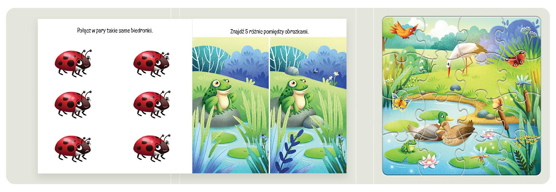 Fantastyczny zestaw AKTYWNOŚCIOWY dla MALUSZKA - zawiera kartonową obwolutę, KSIĄŻECZKĘ z zadaniami oraz kolorowankami i 2 UKŁADANKI MAGNETYCZNE. Książeczka oraz puzzle przedstawiają ZWIERZAKI żyjące na łąkach. SYMPATYCZNE ILUSTRACJE i PROSTE ZAGADKI angażują do zabawy. W zestawie urocza książeczka z zadaniami dla AKTYWNYCH maluchów. Dzięki puzzlom dziecko ćwiczy spostrzegawczość oraz rozwija wyobraźnię. Zestaw " zapewnia wszechstronny ROZWÓJ " pobudza WYOBRAŹNIĘ " rozwija CIEKAWOŚĆ ŚWIATA " wzbogaca SŁOWNICTWO PUZZLE MAGNETYCZNE Seria dla maluszków składa się z ZESTAWÓW z KSIĄŻECZKAMI do kolorowania i rozwiązywania zadań oraz 2 UKŁADANEK MAGNETYCZNYCH po 16 elementów. Przedstawia zwierzęta żyjące na ŁĄCE oraz na WSI. Zapewnia świetną zabawę i wspomaga ROZWÓJ dziecka.Szczegółowe informacje na temat książki Na łące. Puzzle magnetyczne