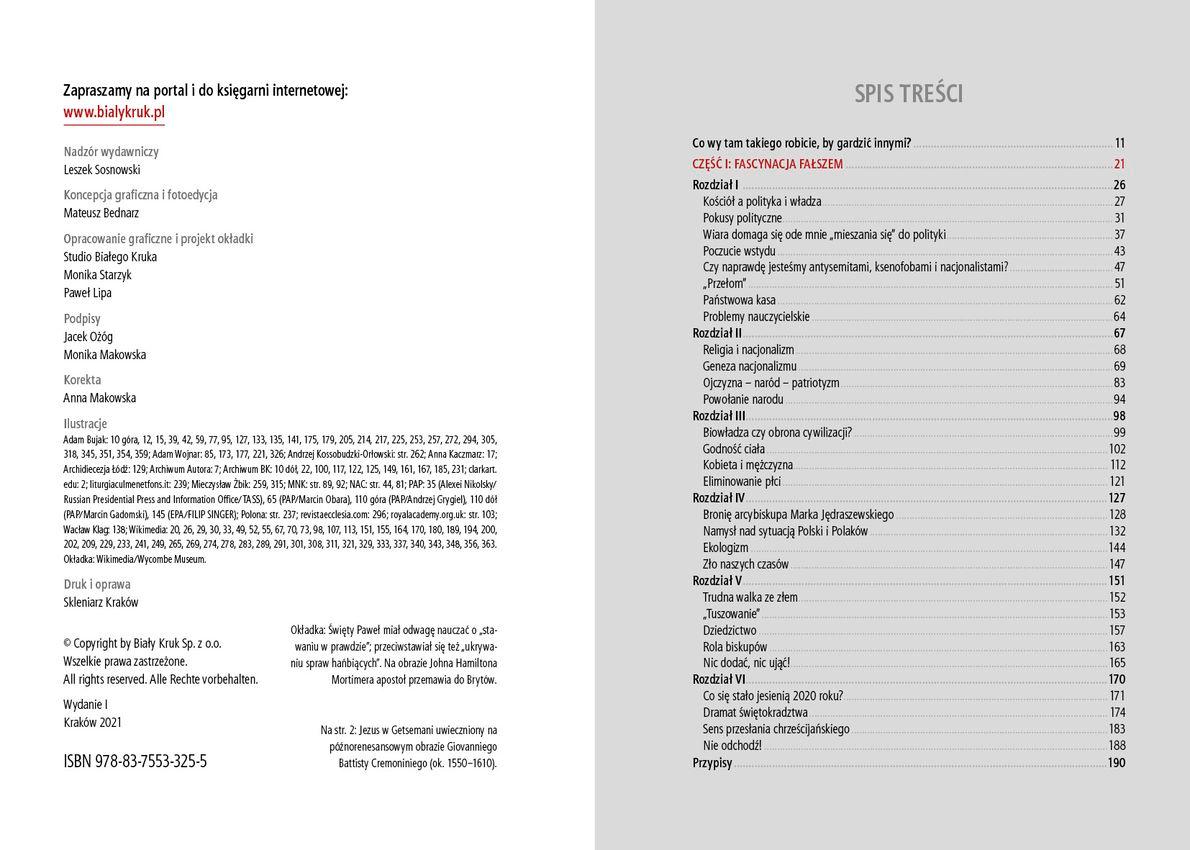 Zbyt wielu z nas milczy. Zbyt wielu najbardziej ceni sobie święty spokój, czyli spokój uzyskany kosztem przeróżnych ustępstw na polu moralności i zasad wiary. Poprawność polityczna nachalnie propagowana przez mass media i wymuszana coraz to nowymi rozporządzeniami prawnymi dotknęła także niektórych reprezentantów i członków Kościoła. Ewangelizacja słabnie z roku na rok albo przeradza się nawet w kompromitujące i gorszące postmodernistyczne widowiska. Z tym wszystkim nie godzi się, przeciw temu protestuje Autor tej książki, ks. prof. Janusz Królikowski. Zwalcza on stereotypy ukształtowane przez wrogów naszej wiary, zwalcza medialne pomówienia kształtujące opinię publiczną. Pokazuje prawdziwe rodowody nacjonalizmów i antysemityzmu złośliwie przypisywanych Kościołowi. Dowodzi, że wiele państw w Unii Europejskiej można dziś nazwać wyznaniowymi, a tym panującym „wyznaniem” staje się wojujący ateizm. Przeciwko chrześcijanom, zwłaszcza przeciw katolikom, skierowany jest zmasowany, brutalny i ordynarny atak. W tej sytuacji nie mamy prawa milczeć! Nie mamy prawa ustępować, rezygnować, poddawać się zniechęceniu – poza naszym wygodnictwem nie istnieją zresztą żadne prawdziwe powody, by temu ulegać. Ta niezwykle aktualna, a przy tym barwnie napisana książka, wzbogacona licznymi ilustracjami wzmacniającymi sugestywność przekazu, wyjaśnia i analizuje uderzające w Kościół – czyli w nas, wiernych – destrukcyjne zjawiska społeczne. Wielkim walorem publikacji jest również wytłumaczenie zrozumiałym językiem błędów teologicznych, doktrynalnych, popełnianych przez tzw. lewicę kościelną. Stąd dzieło ks. prof. Janusza Królikowskiego jest świetną lekturą dla świeckich, ale powinno być także bardzo pomocne w codziennej pracy duszpasterzy różnego szczebla.Szczegółowe informacje na temat książki Nie mamy prawa milczeć! Apologia Kościoła