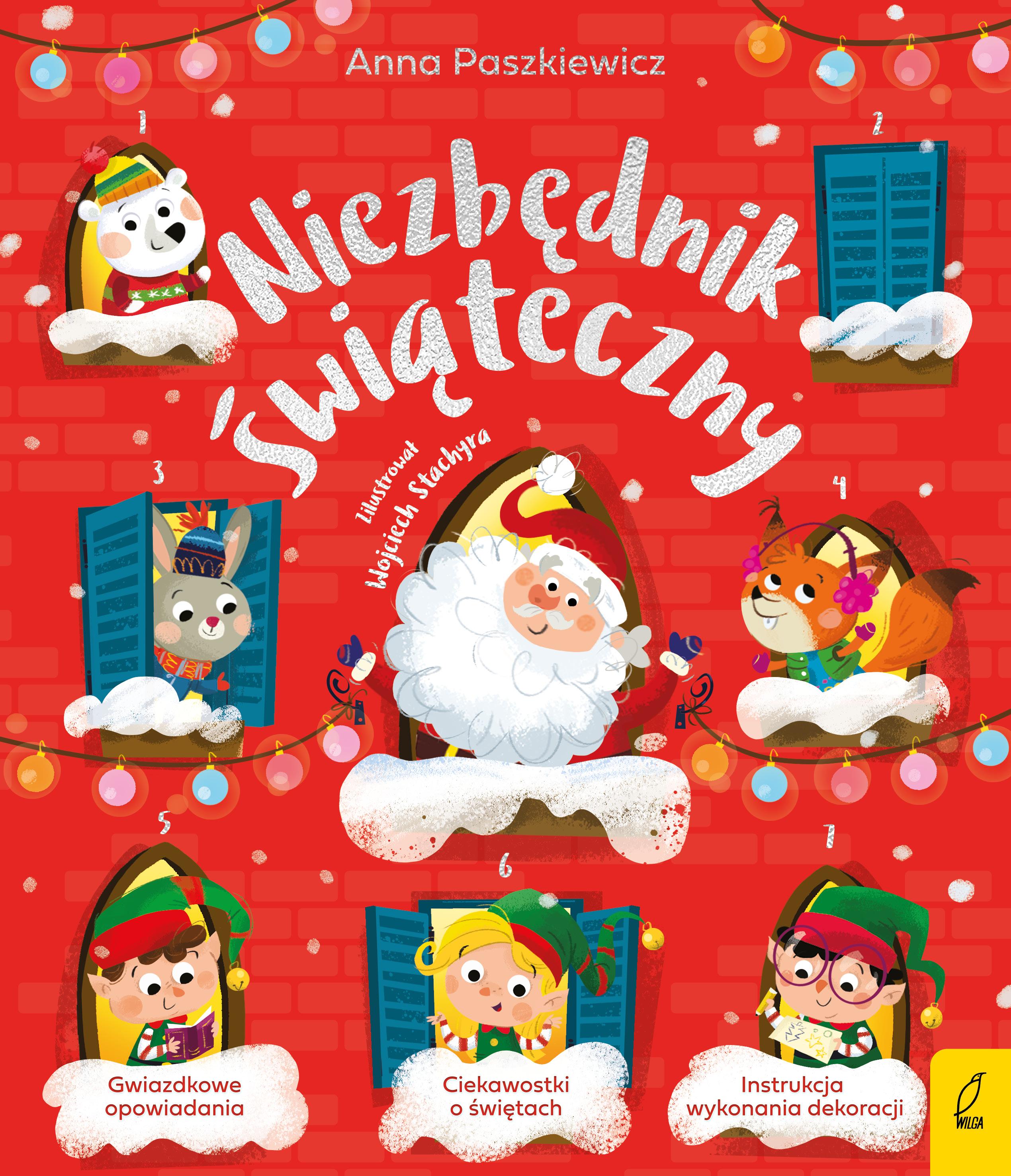 Nadchodzi koniec listopada i zaczyna się adwent. To najbardziej magiczny czas w roku, którego wprost nie mogą się doczekać pomocnicy Świętego Mikołaja! Przed elfami i zwierzakami z Laponii mnóstwo pracy, ale też wiele dni wspaniałej zabawy. Muszą odebrać listy od dzieci z całego świata, przygotować dla nich prezenty i smakołyki oraz zająć się specjalnymi zadaniami – jak zorganizowanie konkursu dla reniferów. Przeżyj niezwykłe przygody wraz z nimi, a przy okazji poznaj mnóstwo ciekawostek na temat Bożego Narodzenia i naucz się przygotowywać niepowtarzalne dekoracje, dzięki którym w twoim domu zapanuje magiczna atmosfera! Wspaniały kalendarz adwentowy, który umili dzieciom oczekiwania na Boże Narodzenie. Książka składa się z trzech rodzajów rozdziałów, które następują po sobie naprzemiennie i łączą się ze sobą tematyką: opowiadań, części informacyjnych z ciekawostkami oraz instrukcji wykonania dekoracji/przepisów na proste przysmaki. Opowiadania skupiają się na życiu mieszkańców warsztatu Świętego Mikołaja w Laponii. Elfy i zwierzaki zajmują się przygotowaniami do świąt: robią wypieki, odbierają listy od dzieci z całego świata, produkują zabawki, pomagają potrzebującym i dekorują okolicę, ale też udają się na wystawę szopek i gwiazdkowy jarmark. Po każdej przygodzie bohaterów następuje związana z nią część informacyjna. Przeczytanie ciekawostek pozwoli dzieciom poznać odpowiedzi na wiele interesujących pytań, takich jak skąd wzięła się tradycja obchodzenia mikołajek, robienia wieńców adwentowych czy ubierania choinki. Po każdej części informacyjnej przed dzieckiem zostaje postawione zadanie wykonania dekoracji domu związanej z tematem lub wypróbowania prostego przepisu. Instrukcje zostały jasno opisane i zilustrowane zdjęciami przedstawiającymi każdy krok. Urocze, pełne zabawnych szczegółów ilustracje wykonał Wojciech Stachyra.