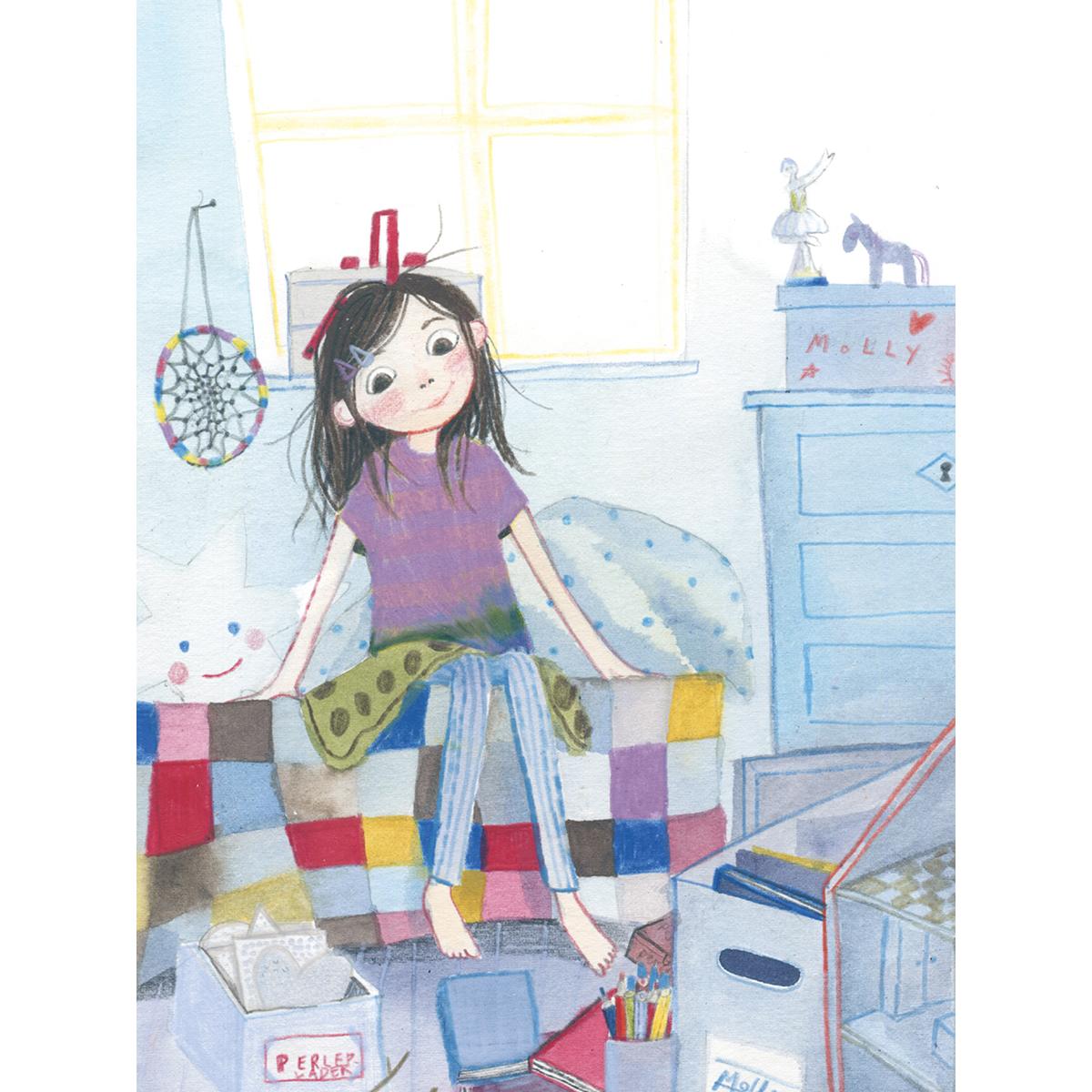 Molly ma wspólny pokój ze swoim młodszym bratem, Mingusem. I czasem naprawdę trudno jej to znieść. Mingus hałasuje, robi bałagan i wszędzie jest pełno jego dziecinnych rzeczy! Nawet granica wyznaczona czerwoną nitką nie pomaga. Jak tu zaprosić koleżanki na nocowanie? One mają już własne pokoje – i Molly też bardzo by chciała. Już nawet dokładnie wie, jak by się urządziła. Tylko musi jakoś przekonać rodziców, że stary pokój jest za mały na dwie osoby…