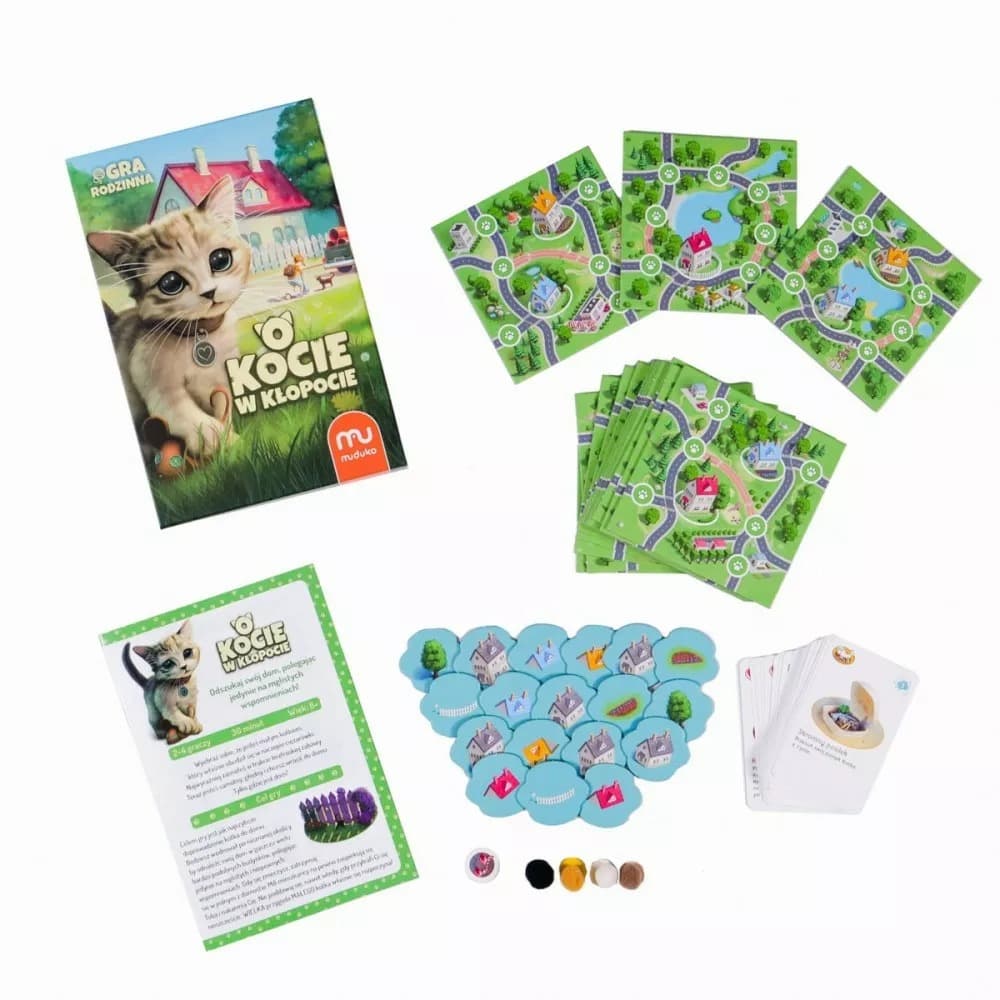 O kocie w kłopocie to pięknie ilustrowana gra rodzinna, która uczy empatii i rozwija spostrzegawczość oraz koncentrację. Będzie doskonałym prezentem dla kociarzy.