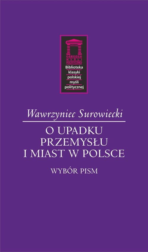O upadku przemysłu i miast w Polsce jest jedną z najbardziej znanych krytyk polskiego życia gospodarczego, społecznego i politycznego. Surowiecki, czołowy myśliciel okresu zaborów, stworzył wszechstronny obraz wielowiekowych błędów i zaniedbań, za sprawą których Rzeczpospolita zamiast owocnie się rozwijać i odgrywać wiodącą rolę w cywilizacyjnym wyścigu krajów i narodów europejskich, pogrążała się w kryzysie, prowadzącym do jej upadku. Jako jeden z pierwszych spośród polskich autorów inspirował się liberalnymi koncepcjami Adama Smitha, ale adoptował je do rodzimych realiów, dopuszczając znacznie większą rolę państwa w gospodarce, choć w ściśle określonych ramach. Chciał modernizować Polskę poprzez rozwój przemysłu – może śmiało uchodzić za jednego z patronów również dziś prowadzonych dyskusji na ten temat. W tomie wydanym w serii Biblioteka Klasyki Polskiej Myśli Politycznej znalazły się także prace Surowieckiego ukazujące go jako badacza dziejów Słowiańszczyzny – uchodził w XIX wieku za ich prekursora i czołowy autorytet w tej dziedzinie. Historyczne analizy pomagały mu mierzyć się z politycznymi i społecznymi dylematami burzliwej epoki, w której przyszło mu żyć: w dobie rozbiorów Polski oraz prób jej ratowania i wskrzeszania (Księstwo Warszawskie), w czasach, gdy idee rewolucji francuskiej i Oświecenia – m.in. za sprawą sukcesów Napoleona Bonaparte – zmieniały oblicze Europy, ale też w okresie, gdy wykształcił się porządek europejski oparty o supremację potęg odgrywających kluczową rolę na kongresie wiedeńskim. To niezwykle interesujące tło stanowi dodatkowy walor twórczości Surowieckiego – autora czasów wielkiej zmiany, którego rozważania pozwalają współczesnemu czytelnikowi lepiej zrozumieć jej istotę.