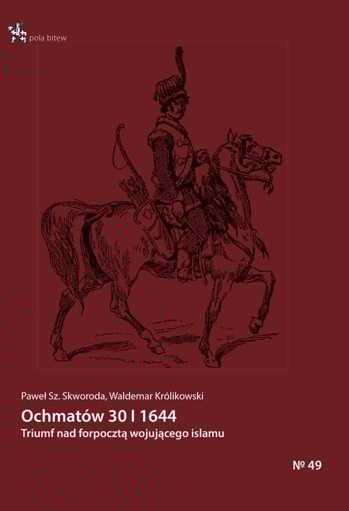 Spis treści: Wstęp I Tatarzy II Armia koronna pierwszej połowy XVII wieku III Kampania IV Bitwa V Polityka zagraniczna króla Władysława IV Wazy Zakończenie Aneksy Bibliografia Spis map i schematów 30 stycznia 1644 roku doszło do wydarzenia bez precedensu w dziejach wojskowości staropolskiej. Oto armia koronna pod komendą hetmana wielkiego koronnego Stanisława Koniecpolskiego pobiła Tatarów krymskich, na czele których stał Tuhaj, bej perekopski. Zwycięstwo to było pierwszym odniesionym nad stepowymi jeźdźcami, zanim zdołali oni przedostać się w głąb ziem koronnych, aby palić, gwałcić, rabować i porywać. Sławę zwycięzcy głosiły druki ulotne, pisane po łacinie, niemiecku i włosku. Do dziś historycy podkreślają niecodzienność tego zwycięstwa, którego skutkiem było uniemożliwienie wrogowi wdarcia sie na ziemie polskie. Zwracają też uwagę na udane współdziałanie wojsk państwowych z prywatnymi, jak też na ważną rolę Kozaków rejestrowych w czasie kampanii ochmatowskiej. Bitwa ta była zarazem ostatnim tak znaczącym zwycięstwem polskim nad Tatarami przed wybuchem powstania Bohdana Chmielnickiego, które przyniosło współdziałanie tatarsko-kozackie i w efekcie szereg dotkliwych porażek armii koronnej... Paweł Szymon Skworoda (1978). Autor książek o charakterze popularnonaukowym: Warka-Gniezno 1656 (2003), Hammerstein 1627 (2006), Wojny Rzeczypospolitej Obojga Narodów ze Szwecją (2007), Wojny w XVII-wiecznej Europie. Zarys problematyki (2014). Napisał też powieść historyczną Na skrzydłach mew poświęconą lotnikom 317 Wileńskiego Dywizjonu Myśliwskiego, która ma się ukazać nakładem naszego Wydawnictwa. Nauczyciel historii i wiedzy o społeczeństwie. Jego hobby to turystyka (szczególnie Kresy II RP) i modelarstwo okrętowe. Waldemar Królikowski (1977). Absolwent Instytutu Historycznego UW, nauczyciel historii i doświadczony wychowawca dzieci i młodzieży. Jego hobby to historia nowożytna. W kręgu jego zainteresowań znajdują się też technika wojskowa, papugi i muzyka filmowa. Obecnie oddaje się pracy twórczej w dziedzinie historii wojskowości. Niniejsza książka jest jego pierwszą publikacją.