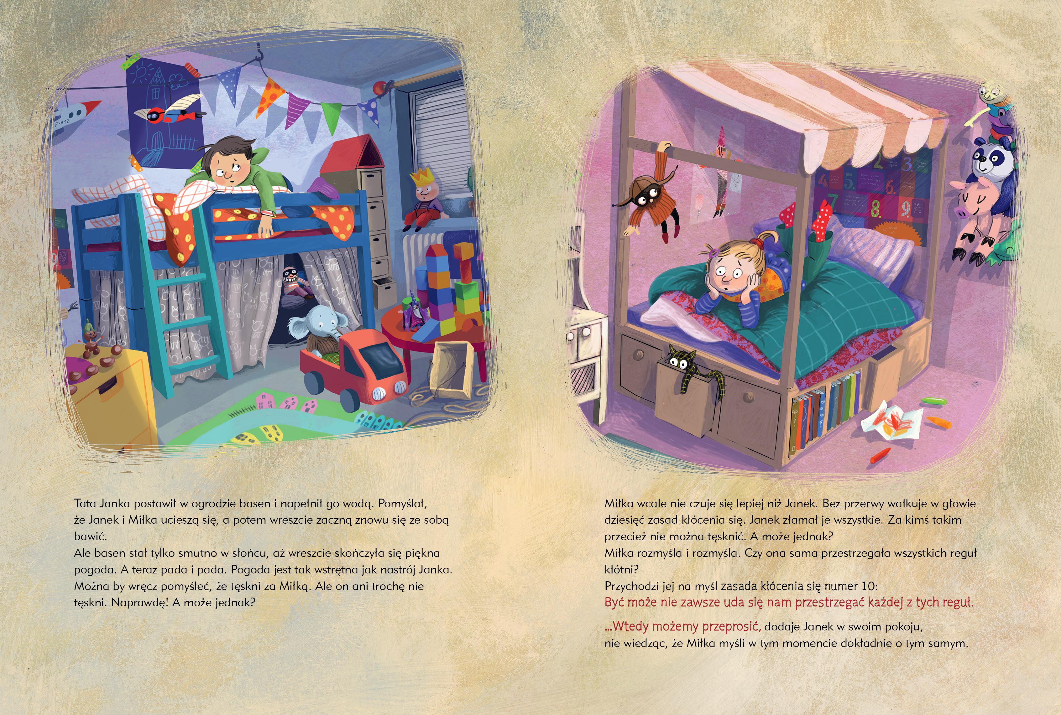 Książka ta pokazuje, że nieporozumienia są czymś całkowicie normalnym i nawet po najgorszej kłótni można się pogodzić, a przyjaźń czasem może na tym zyskać. Ważny jest jednak wzajemny szacunek i trzymanie się kilku prostych zasad. Pełne fantazji opowiadanie ze szczyptą humoru spodoba się małym i dużym czytelnikom, a jednocześnie będzie doskonałym punktem wyjścia do otwartych rozmów o kłóceniu się i przywracaniu zgody.