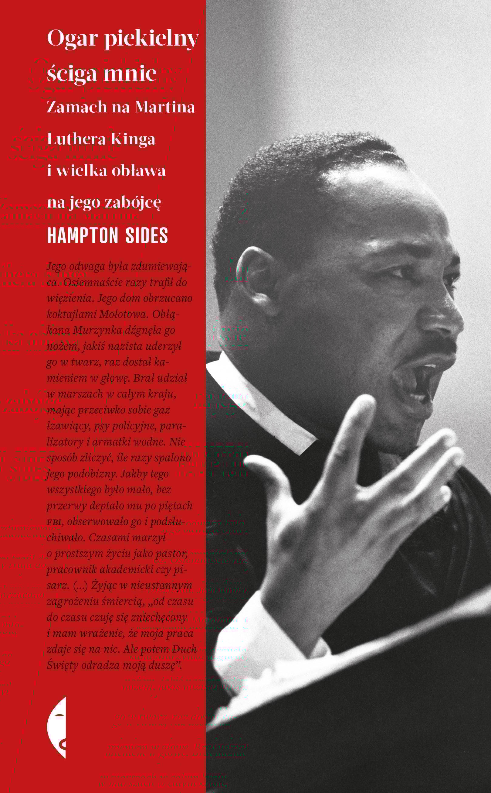 W kwietniu 1968 roku James Earl Ray przyjechał do Memphis. Wynajął obskurny pokój ze świetnym widokiem na motel Lorraine, kupił karabin snajperski i wziął na cel historię. Po oddaniu śmiertelnego strzału do Martina Luthera Kinga porzucił broń, wsiadł do białego mustanga i spokojnie odjechał. Policja, która już parę minut po zabójstwie pojawiła się na miejscu zdarzenia, minęła się z nim o kilka chwil. Śledztwo wkrótce przejęło FBI, rozpoczynając największy pościg w historii Ameryki, w którym udział wzięło ponad trzy i pół tysiąca agentów, który kosztował prawie dwa miliony dolarów i który zakończył się daleko poza granicami USA. Sides stworzył pasjonujący thriller non-fiction, konstruując równoległe portrety dwóch bardzo różnych mężczyzn, ofiary i zabójcy: charyzmatycznego lidera ruchu na rzecz walki z dyskryminacją rasową i zaburzonego samotnika z zagmatwaną i brutalną przeszłością, którego motywy były równie mętne jak jego tożsamość. Książka nominowana do Nagrody Edgara, dorocznej nagrody wręczanej przez Mystery Writers of America. Jedna z najlepszych książek roku według „Time”, „The Washington Post”, „The Christian Science Monitor”, „The Oprah Magazine”, „St. Louis Post-Dispatch” i „San Francisco Chronicle”.Szczegółowe informacje na temat książki Ogar piekielny ściga mnie Zamach na Martina Luthera Kinga i wielka obława na jego zabójcę