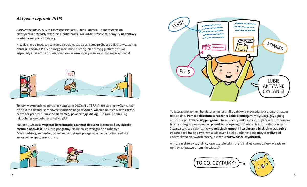 Nowa seria Anny Jankowskiej do zabawy i czytania dla dzieci w wieku przedszkolnymAktywne czytanie PLUS, czyli czytanie i działanie! Trzeba coś policzyć, wytężyć wzrok, poszukać słów, a nawet machać książką nad głową. Właśnie takie aktywne czytanie spowoduje, że mali czytelnicy nie tylko poznają przygodę, lecz także wezmą w niej czynny udział.Poza zabawami dzieci, które próbują już czytać samodzielnie, znajdą na każdej stronie komiksowe dymki – wyraźna czcionka i mało tekstu – idealnie, by od nich zacząć! Kto wie, może potem dzieci będą chciały przeczytać same całą książkę?****W tej części razem z kotem Czarusiem będziemy szukać zgubionego guzika, najpiękniejszego skarbu z jego wspaniałej kolekcji. Przy okazji odkryjemy siłę przyjaźni oraz wartość, jaką ma pomaganie komuś w potrzebie. Czaruś zaprasza do wspólnego spędzania czasu, budowania bliskości oraz rozmowy o tym, co ważne dla małych czytelników. I niezmiennie gwarantuje świetną zabawę!****Anna Jankowska jestem pedagożką, trenerką szkoleń, autorką książek i mamą. Na co dzień łączę pasję do literatury dziecięcej z wychowaniem wspierającym, dzieląc się pomysłami i przemyśleniami na blogu . Wierzę, że odpowiednio dobrane książki mogą pomóc dzieciom lepiej zrozumieć siebie i otaczający świat. Nie siadam do czytania bez kubka dobrej kawy, a wolny czas poświęcam na hodowanie pomidorów. Każdy krzaczek jest inny i wymaga dużo troski… zupełnie jak dzieci! Adam Święcki urodził się w 1977 roku. Z wykształcenia architekt, z pasji i zawodu ilustrator, scenarzysta i rysownik komiksowy. Tworzy dla najmłodszych, trochę starszych i całkiem dorosłych. W swoich pracach często nawiązuje do polskiej demonologii ludowej i przyrody. Powyższy opis pochodzi od wydawcySzczegółowe informacje na temat książki Ojej, zguba! O relacjach, empatii i wspieraniu innych