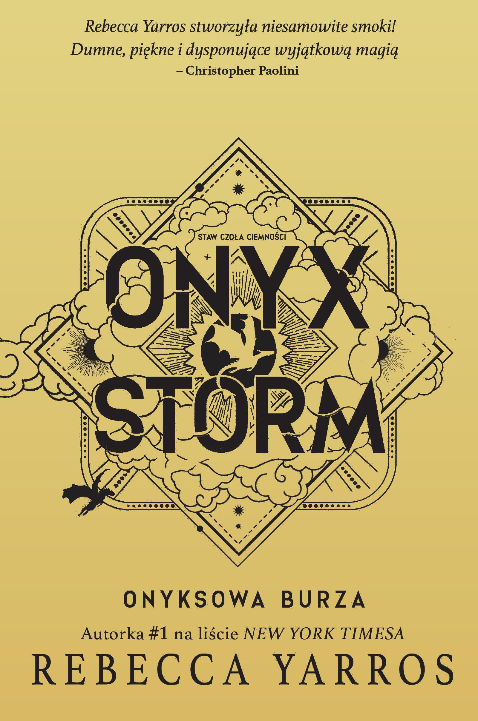 Po spędzeniu niemal osiemnastu miesięcy w Uczelni Wojskowej Basgiath Violet Sorrengail wie, że nie ma już czasu na naukę. Nie ma już czasu na niepewność. Ponieważ bitwa zaczęła się na dobre, a wraz z wrogami nadchodzącymi z zewnątrz, jak i tymi kryjącymi się w ich szeregach, nie wiadomo już komu ufać. Teraz Violet musi wybrać się za upadające aretiańskie osłony, aby znaleźć sprzymierzeńców na obcych ziemiach, którzy będą gotowi stanąć do walki razem z Navarrą. Podróż ta podda próbie jej inteligencję, szczęście i siłę, ale ona zrobi wszystko, żeby uratować ukochanych – swoje smoki, rodzinę, dom oraz jego. Nawet jeśli oznacza to trzymanie tajemnicy tak wielkiej, że mogłaby wszystko zniszczyć. Potrzebują armii. Potrzebują mocy. Potrzebują magii. I potrzebują jednej rzeczy, którą tylko Violet może odnaleźć – prawdy. Jednak burza nadchodzi… I nie wszyscy przetrwają jej gniew.Szczegółowe informacje na temat książki Onyx Storm. Onyksowa burza