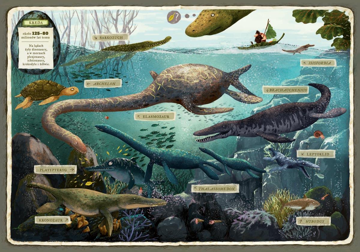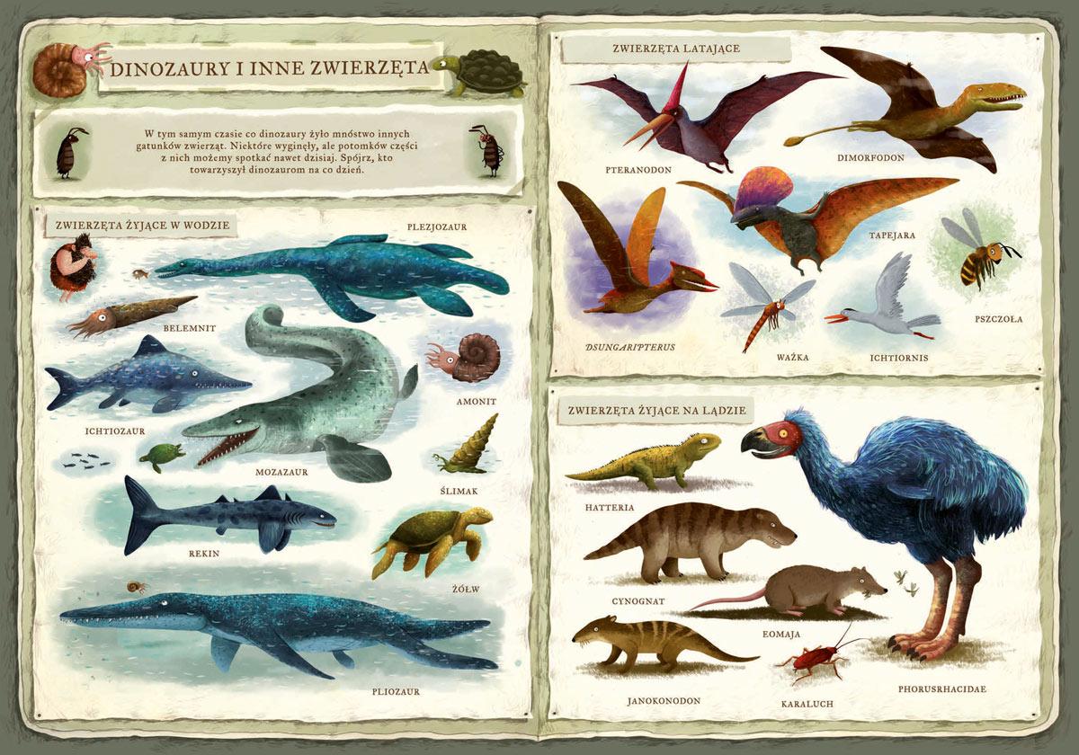 Kudłacz i karaluch wyruszają w podróż… w czasie. Trafią do krainy dinozaurów i poznają te niezwykłe zwierzęta: olbrzymiego Riochazaura, Trematozaura, który zgubił jajo, roślinożernego Diplodoka, żyjącego w wodzie Plejozaura, Tyranozaura Rexa kłócącego się z Ankylozaurem, latające Archaeopteryxy i wiele, wiele innych. Edukacja, humor, zadania interaktywne, a przede wszystkim piękne ilustracje Emilii Dziubak sprawiają, że nie sposób przejść obok tej książki obojętnie. To znakomity prezent dla dzieci w wieku od 2 do 6 lat. Emilia Dziubak – autorka i ilustratorka książek dla dzieci. Absolwentka Akademii Sztuk Pięknych w Poznaniu. Współpracuje z autorami i wydawnictwami w Polsce i za granicą. Laureatka Nagrody Literackiej . Warszawy w 2014 r. Laureatka nagrody „Przecinek i Kropka” w konkursie na najlepszą książkę dziecięcą w 2016 r. Wyróżniona w 2016 r. w konkursie PTWK Najpiękniejsze Książki Roku 2015 za autorską książkę „Rok w lesie”. Laureatka nagrody „Żółta Ciżemka” w 2017 r. W 2018 r. wyróżniona w konkursie Książka Roku Polskiej Sekcji IBBY. Laureatka nagrody Soligatto 2019. Powyższy opis pochodzi od wydawcy.Szczegółowe informacje na temat książki Opowiem ci, mamo, co robią dinozaury