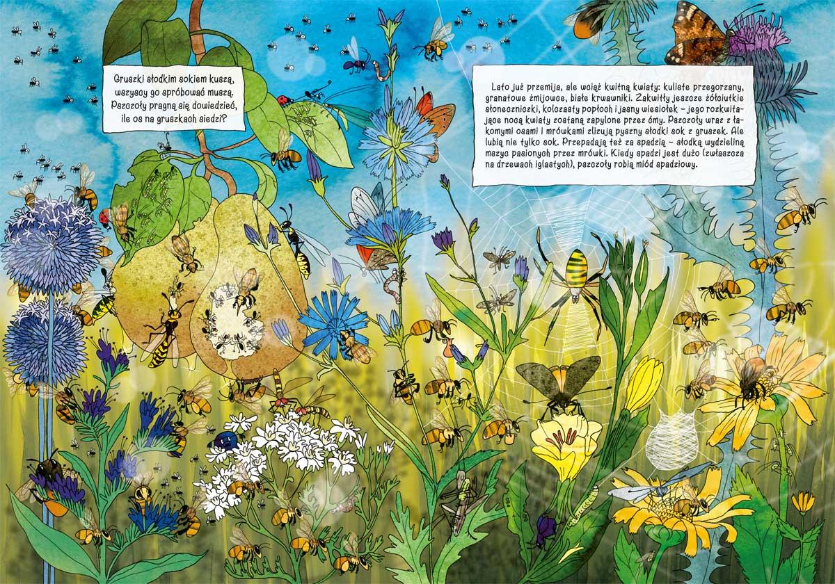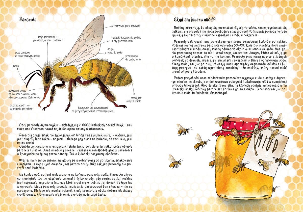 Kolejny tom bestsellerowej serii „Opowiem ci, mamo”. Znakomity prezent dla dzieci w wieku od 2 do 6 lat (i starszych). Sztywne kartki (dzięki którym książka przetrwa wielokrotne przeglądanie), poręczny format, a przede wszystkim niezwykłe ilustracje Katarzyny Bajerowicz, którym towarzyszą rymowanki Marcina Brykczyńskiego – to prawdziwe dzieło sztuki! Twoje dziecko z wypiekami na twarzy będzie oglądać ilustracje pełne licznych detali, przy okazji zdobywając wiedzę na temat życia pszczół i procesu powstawania miodu. To książka nie tylko do czytania, ale głównie do oglądania, zgadywania i opowiadania. Ćwiczy spostrzegawczość dziecka, umiejętność opowiadania, pobudza zainteresowanie światem, rozwija wiedzę na temat przyrody, ale przede wszystkim jest fantastyczną zabawą oraz sposobem na miłe i twórcze spędzenie czasu. Katarzyna Bajerowicz (ur. 1969) – poznanianka, prywatnie mama trzech córek, właścicielka trzech psów i kota, malarka, fotografka, autorka bloga mama3swinek.blogspot.com, majsterklepka, niezła kucharka i rekordowa bałaganiara. Przez kilkanaście lat pracowała jako grafik, a od jakiegoś czasu zajmuje się ilustracją. Najbardziej lubi akwarele, makaron z sosem pomidorowym i kapelusze. Od dzieciństwa czuje pociąg do rozmaitych robali. Zaczęło się od spacerów z tatą po lesie – do wielkiego mrowiska w buczynie. Później hodowała pająki, żuki, patyczaki, karaluchy z Madagaskaru i olbrzymie ślimaki. I tak jej zostało, choć nie trzyma już owadów w terrarium – teraz podgląda ja we własnym ogrodzie. I robi to codziennie, bo to najlepsza i najbardziej niezwykła opowieść, jaką zna. Marcin Brykczyński (ur. 1946) – ekonomista z wykształcenia, poeta z powołania. Laureat licznych nagród, w tym Polskiego Towarzystwa Wydawców Książek, Polskiej Sekcji IBBY oraz Fundacji Świat Dziecka. Znakiem rozpoznawczym jego twórczości dla najmłodszych są błyskotliwe zabawy słowne, oryginalne poczucie humoru i optymistyczne spojrzenie na świat. W „Naszej Księgarni” poeta wydał m.in. „Białego niedźwiedzia, czarną krowę” (z ilustracjami Grażki Lange), pozycję umieszczoną na Liście Honorowej IBBY, „Skąd się biorą dzieci” oraz „Chodzi o to, czy wiesz co to. Zwierzęta”. Jest także autorem wierszowanych zagadek do książek z serii „Opowiem ci, mamo”.