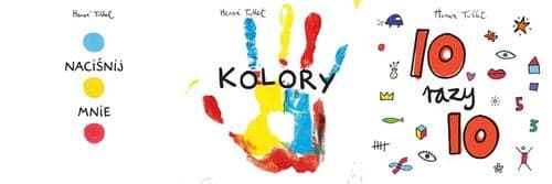"Pakiet najbardziej kreatywnych i edukcyjnych książek Herve Tulleta zawiera jego słynny bestseller NACIŚNIJ MNIE (ponad milion egzemplarzy sprzedanych na całym świecie) oraz książki KOLORY (nauka kolorów) i 10 RAZY 10 (nauka liczenia). Książki z tej serii pobudzają u dzieci kreatywność, spostrzegawczość oraz abstrakcyjne myślenie. Zachęcają rodziców wraz z dziećmi do aktywnej lektury oraz wspólnej nauki (kolorów, liczenia, kształtów, opowiadania bajek). NACIŚNIJ MNIE (wydanie polsko-francuskie) - szybko stała się międzynarodowym hitem, została zaliczona do 10 najlepszych książek dla dzieci wg Amazon.com oraz do 11 najlepszych książek przez opiniotwórczy blog Huffington Post. Nagroda Główna w kategorii Kultura w konkursie Świat Przyjazny Dziecku zorganizowanym przez Komitet Ochrony Praw Dziecka.Laureat plebiscytu czytelników miesięcznika ""Dziecko"" (AGORA) - NAJLEPSZY PRODUKT ROKU 2013 - w kategorii ""Najlepsza książka dla dzieci"". Interaktywna, kreatywna, edukacyjna - zachęca dzieci oraz dorosłych do wspólnej zabawy i nauki. To książka, którą trzeba przekręcać, na którą trzeba dmuchać, której trzeba klaskać... KOLORY - czy pamiętasz zaczarowane kropki z bestsellera NACIŚNIJ MNIE? Teraz odkryj magię KOLORÓW! Kochany przez dzieci oraz rodziców na całym świecie francuski autor oraz ilustrator zaczarowanych książek dla dzieci - Hervé Tullet - tym razem zaprasza swoich czytelników do zabawy i nauki w magicznym świecie KOLORÓW. 10 RAZY 10 – odkryj siłę własnej wyobraźni oraz magię zaklętą w książkach Herve Tulleta, autora bestselera „Naciśnij mnie”! Nauczysz się z nami nie tylko kształtów, kolorów i liczenia, ale też opowiadania bajek..."
